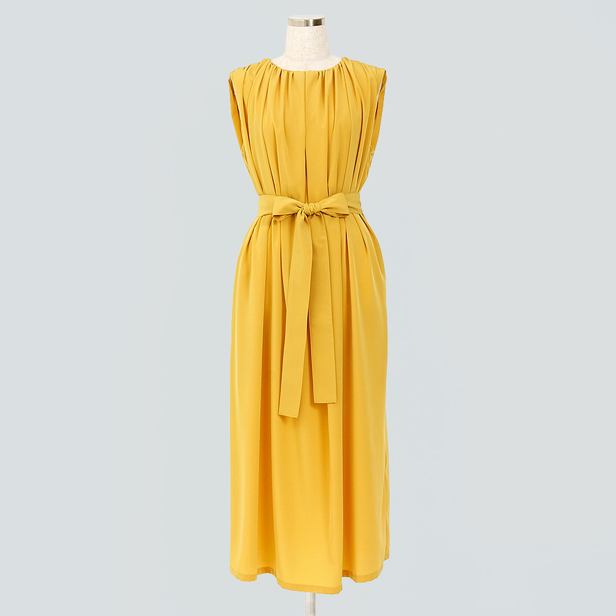 ギャザーデザインワンピース(Sサイズ / イエロー / chousonnette(シューソネット)) [付属品 1点:リボン]