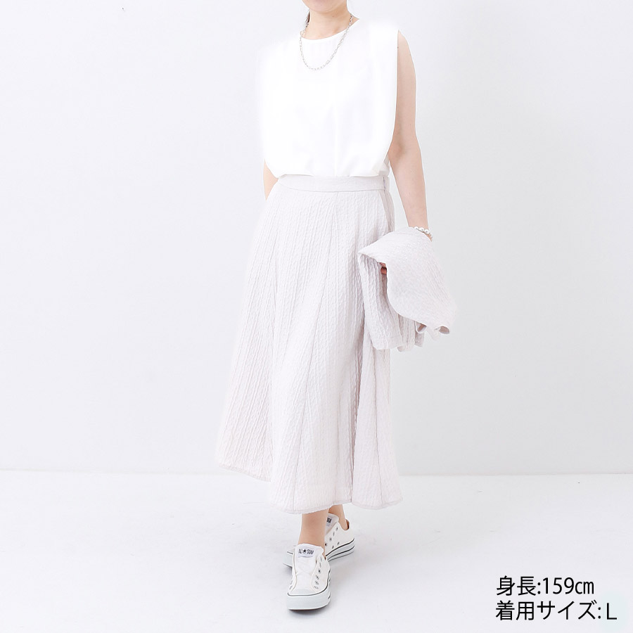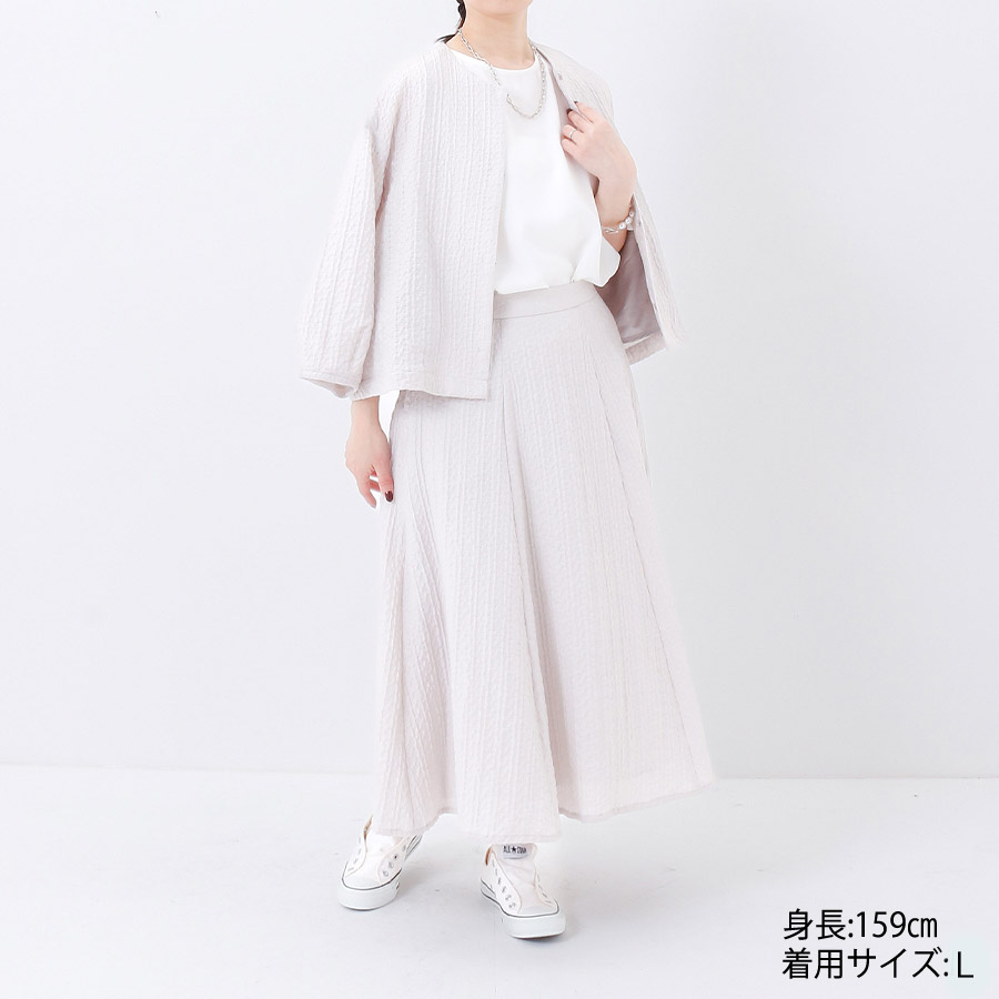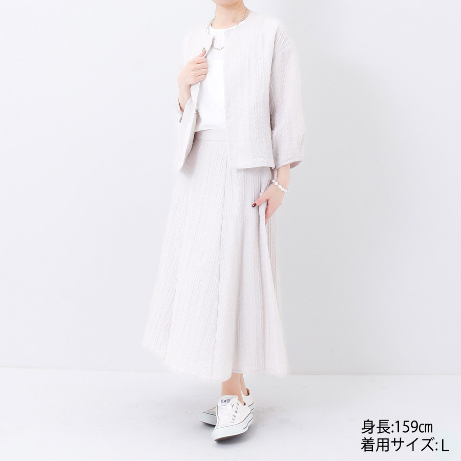 ブルゾンと同素材のフレアスカート。