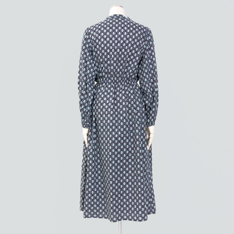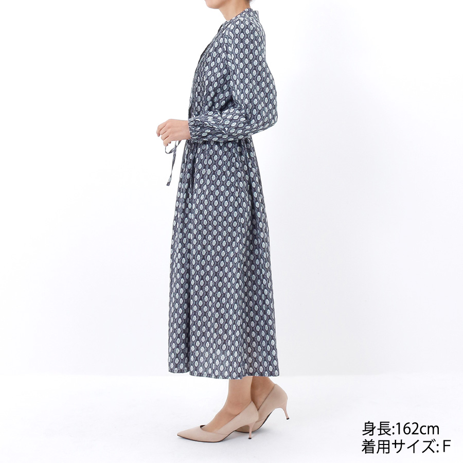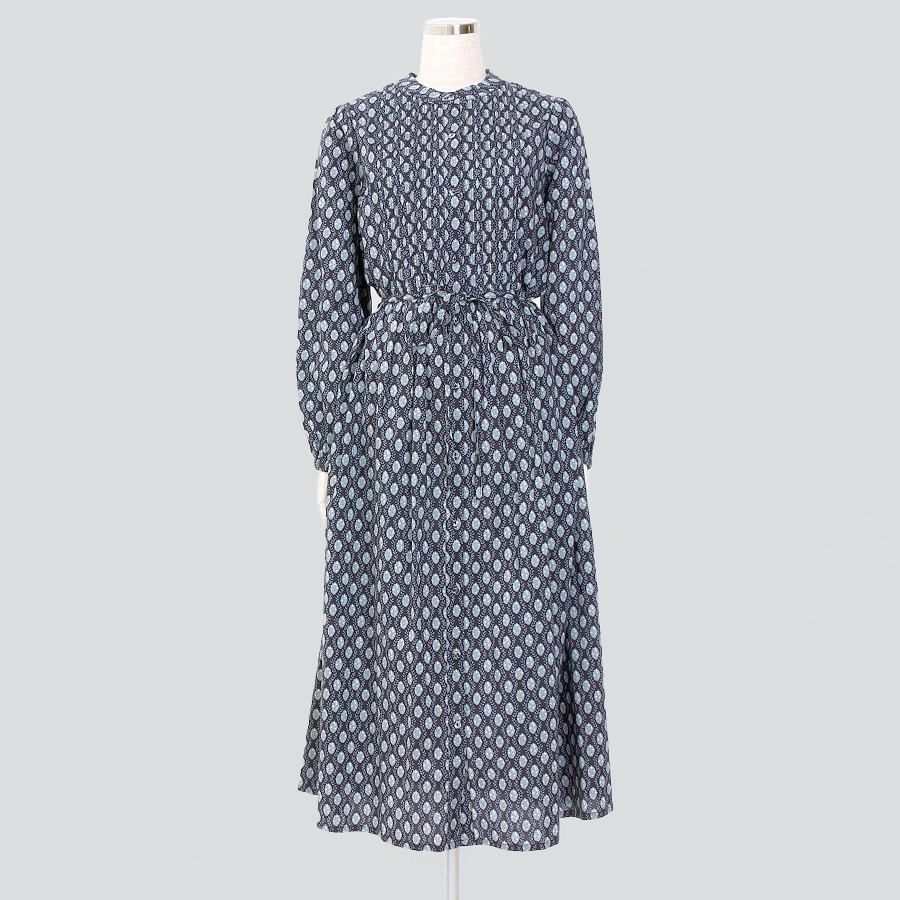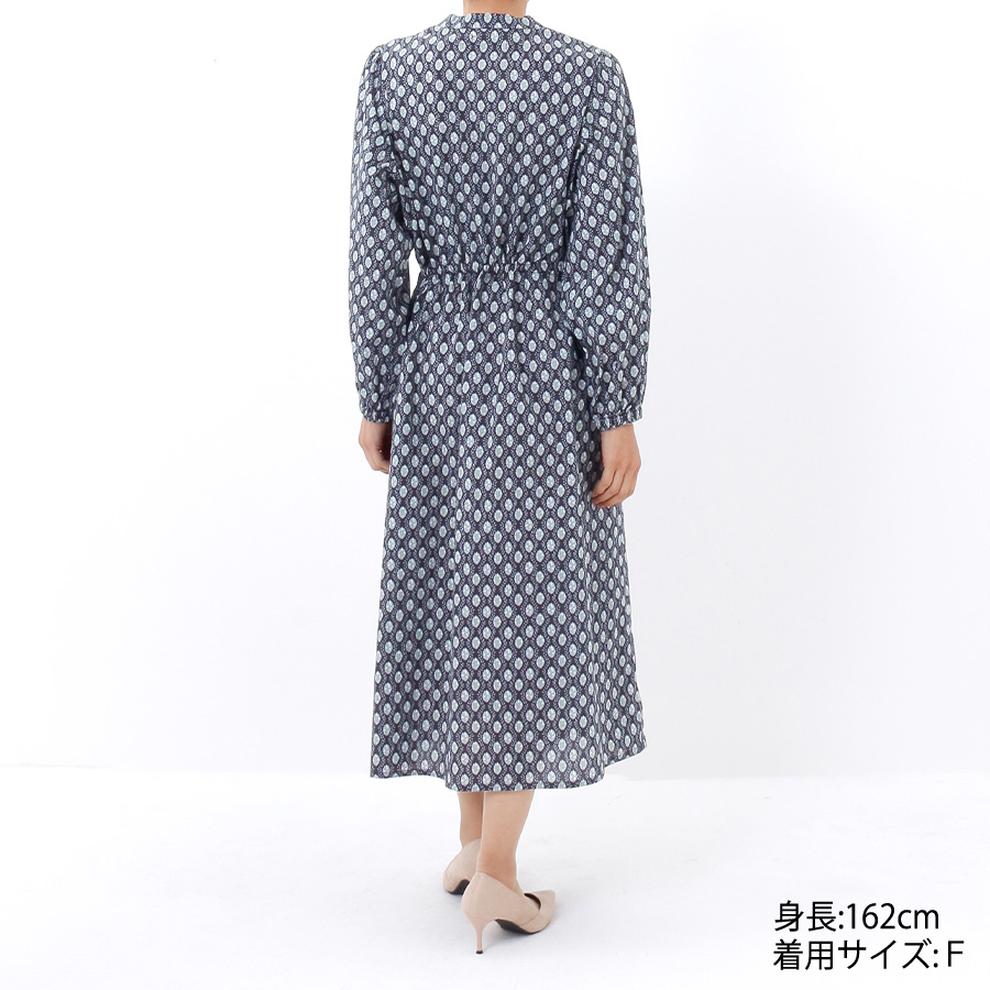 ツタ柄細ウエストドローストリングワンピース(Fサイズ / ネイビー / sosotto(ソソット))