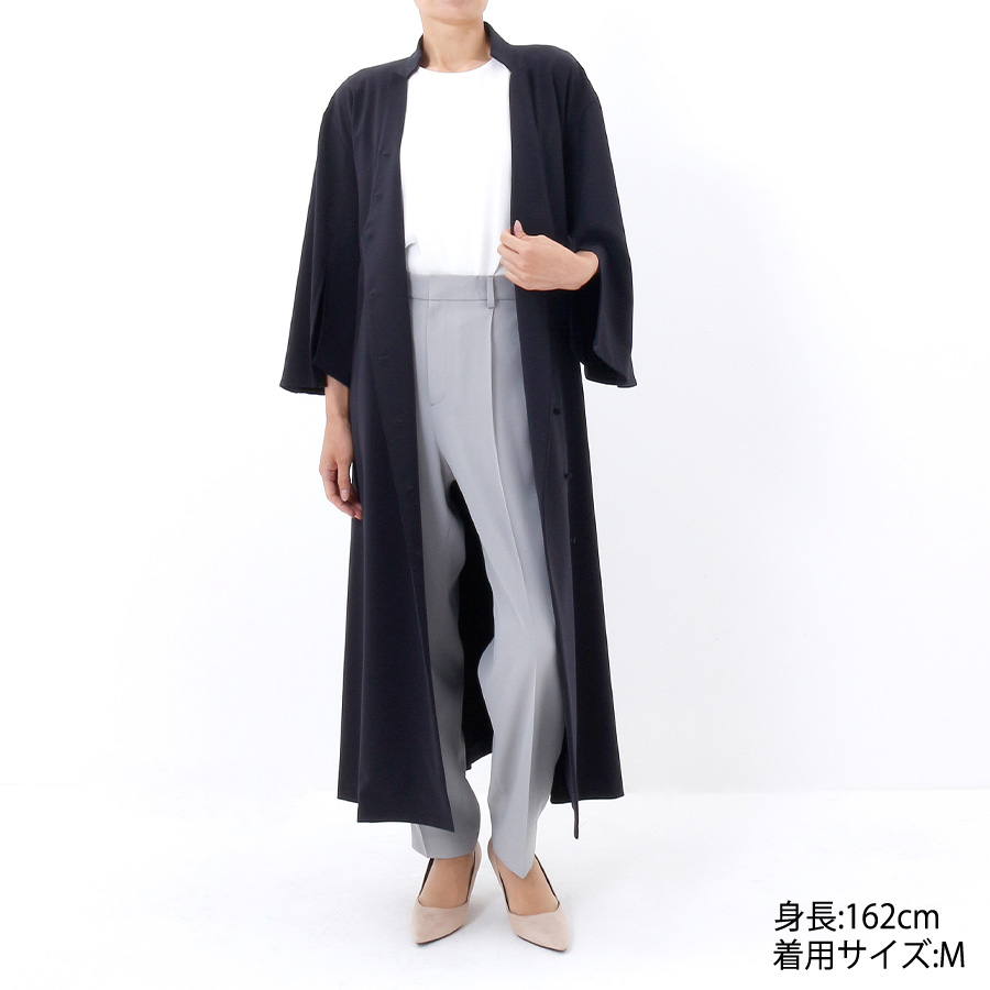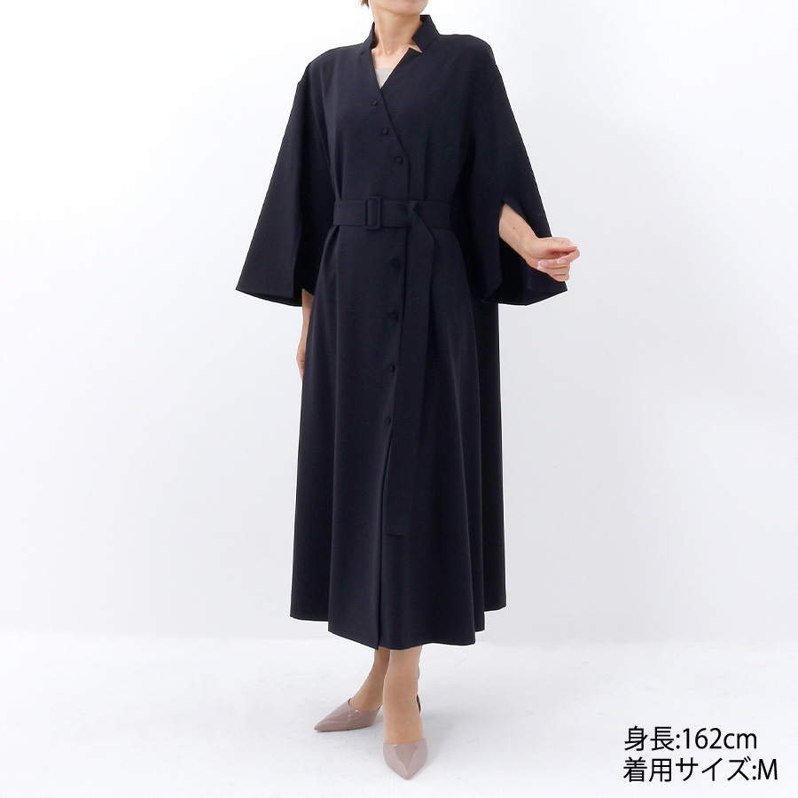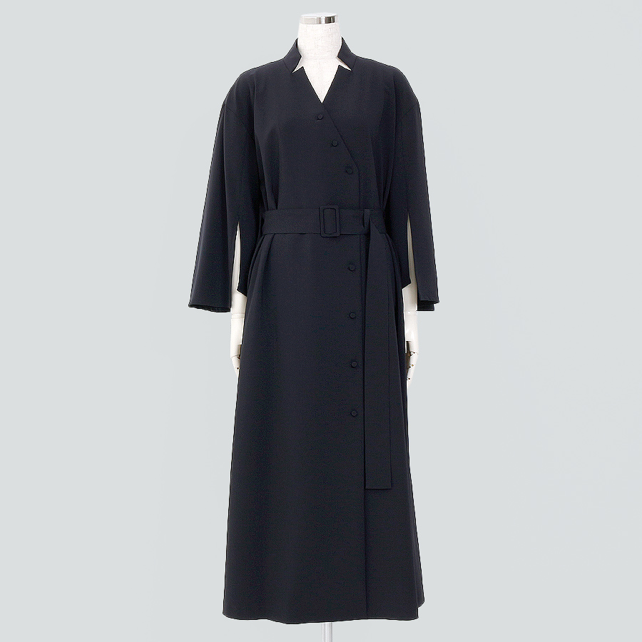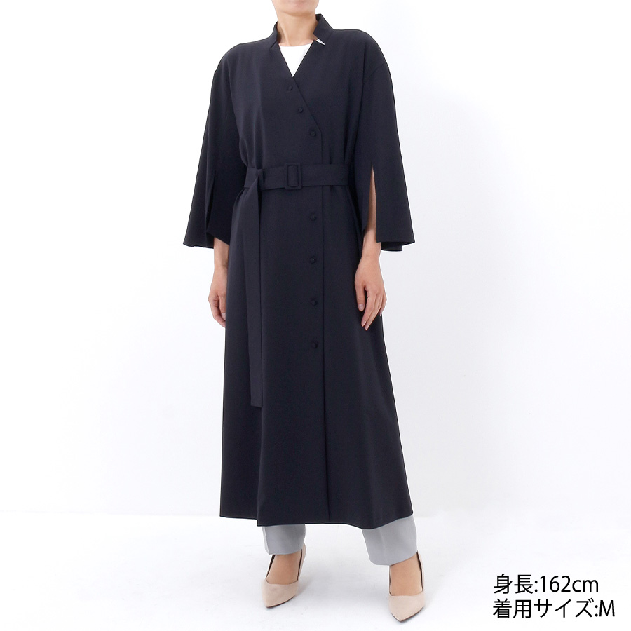 ラップワンピースとしても肌寒い時にはコートとしても幅広くコーディネイトしていただけるワンピース。上品な印象のスリット袖は程よい抜け感と、女性らしさを演出してくれます。