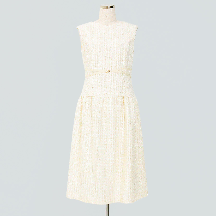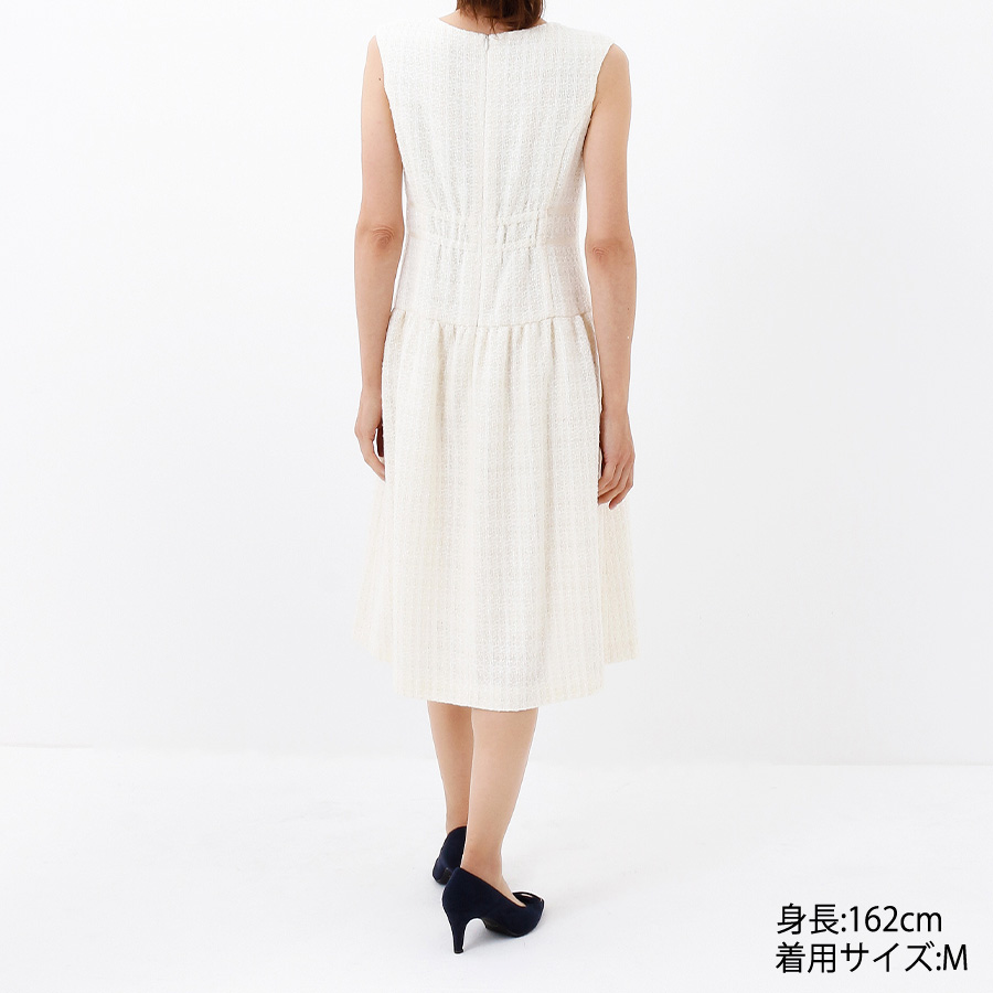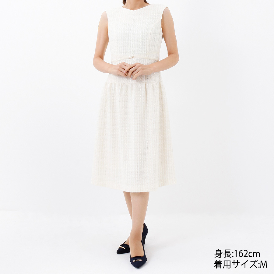 ウエストマークラメツイードワンピース。