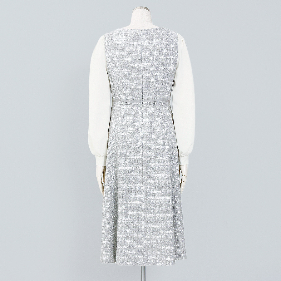 ラメツイード素材がラグジュアリーに映えるワンピース。