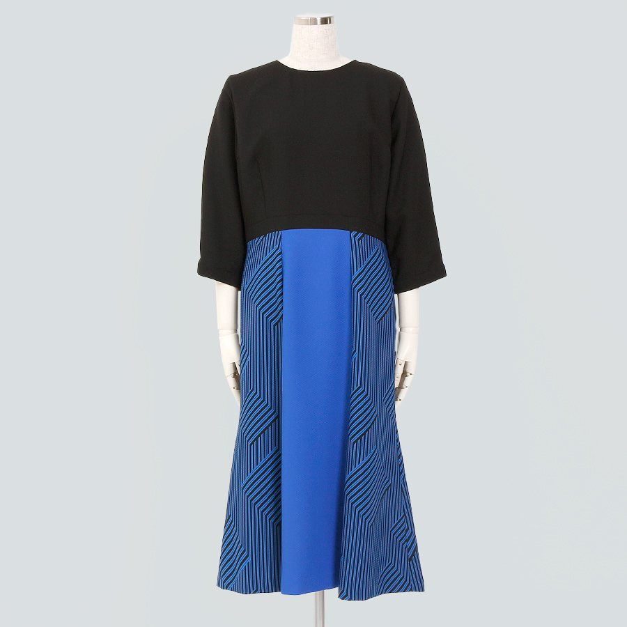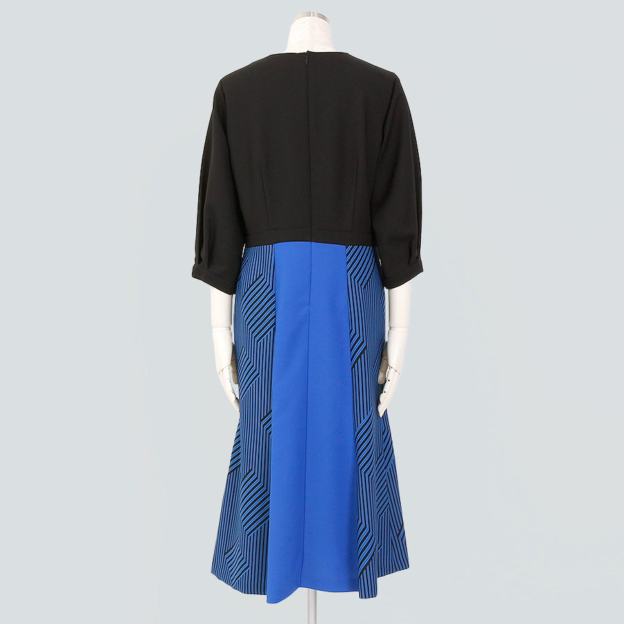 幾何柄ワンピース(Lサイズ / ブラック×ブルー / LAURA-MANSI(ローラマンシ))