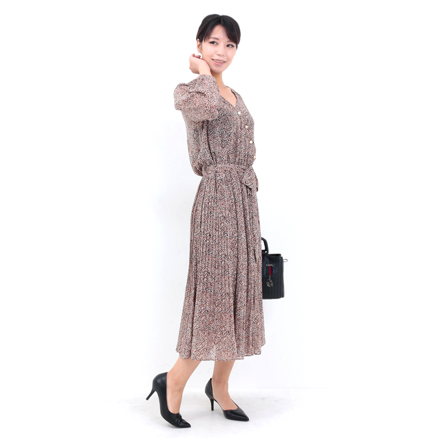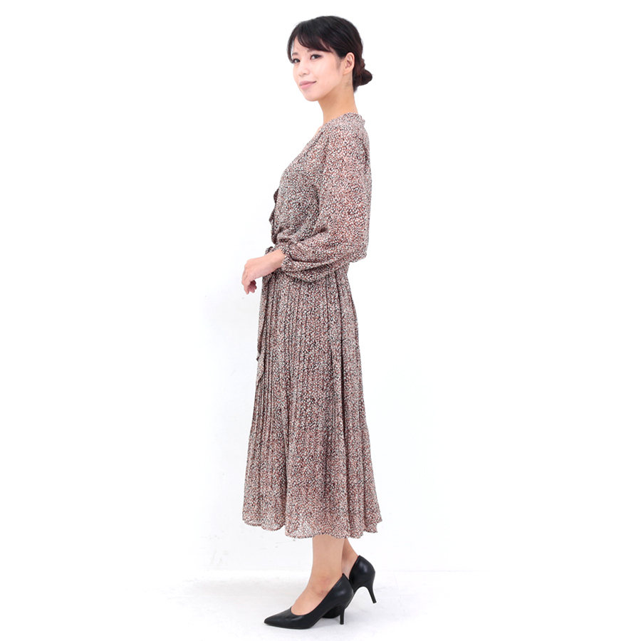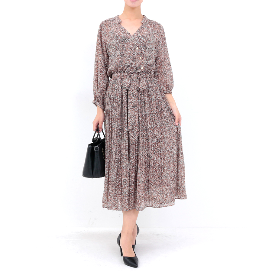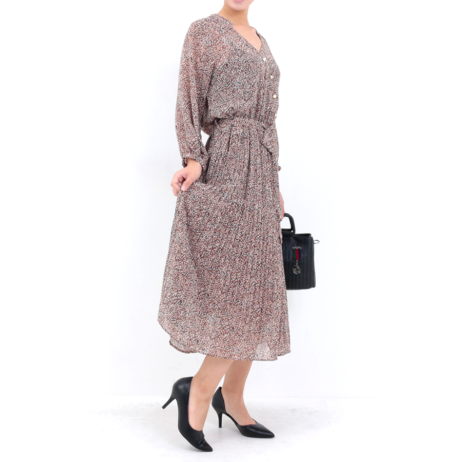 レオパードプリーツワンピース(Mサイズ / キャメル / Bou Jeloud(ブージュルード)) [付属品 1点:リボンベルト]