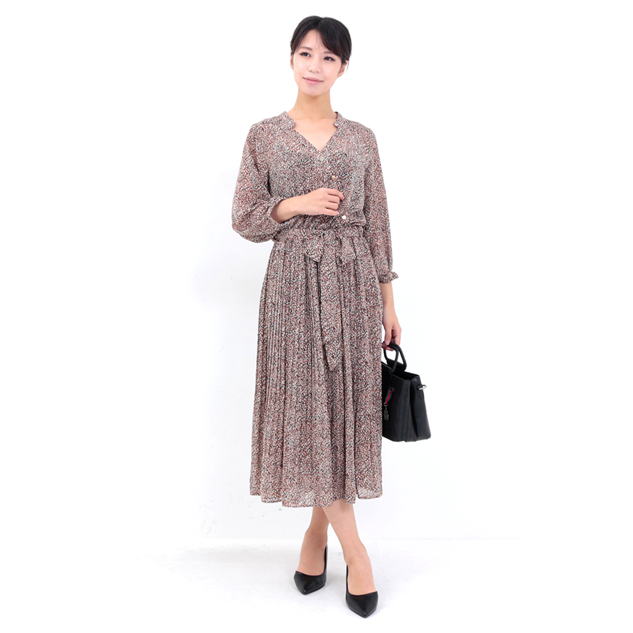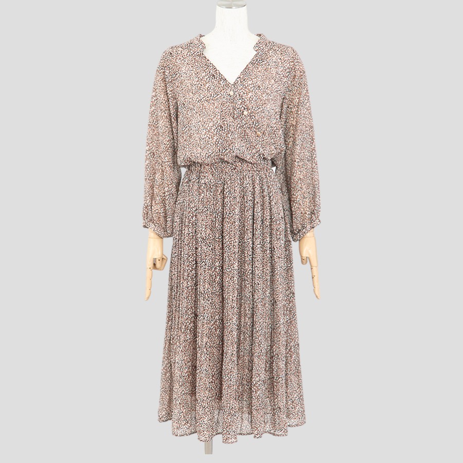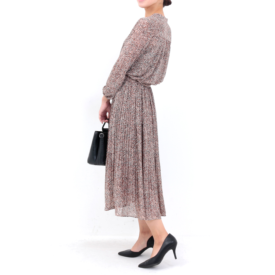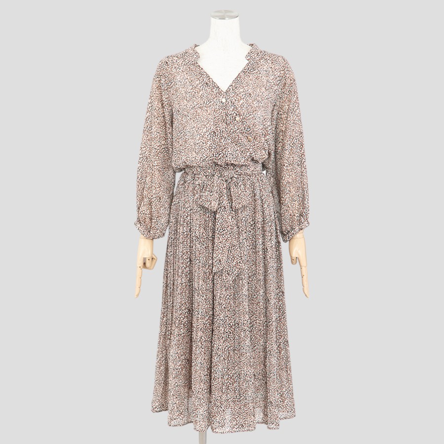 レオパードプリーツワンピース(Mサイズ / キャメル / Bou Jeloud(ブージュルード)) [付属品 1点:リボンベルト]