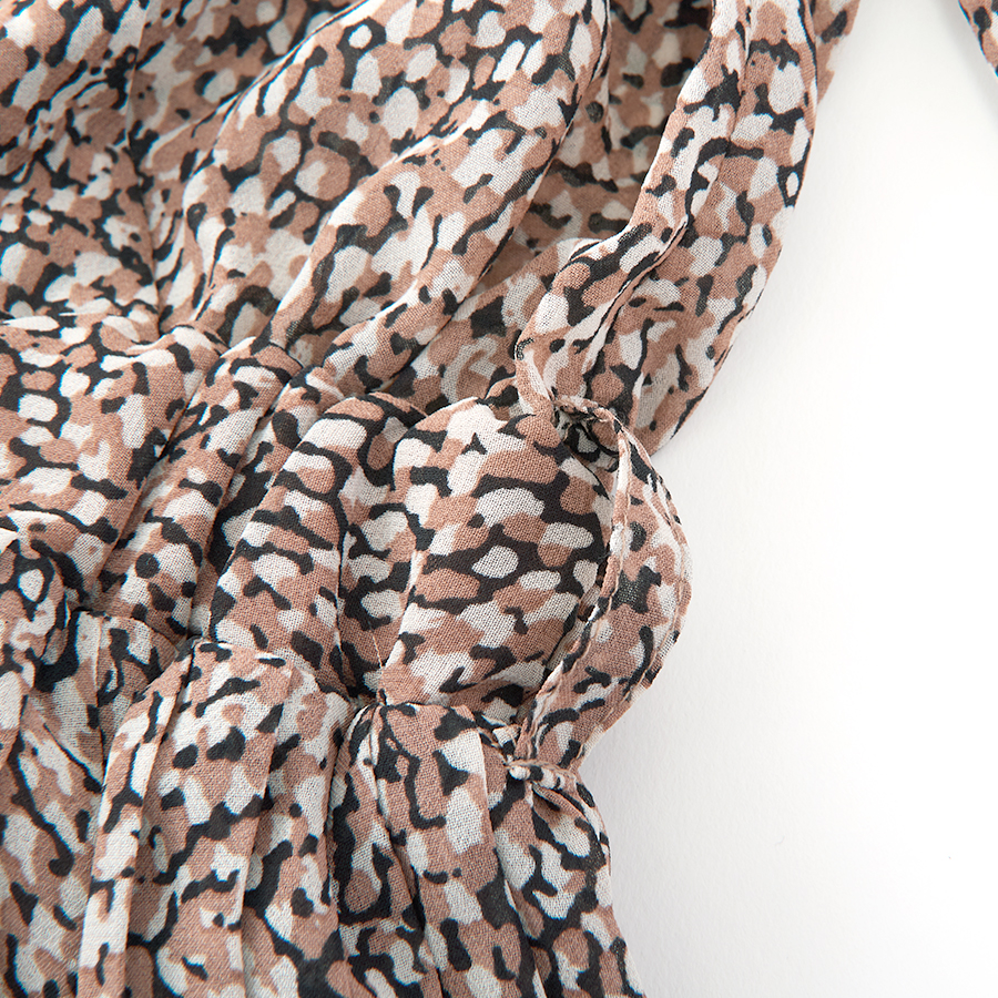 どちらかというと豹柄の感じですが、きてみると意外と気にならないです。袖の絞りが気になりました。