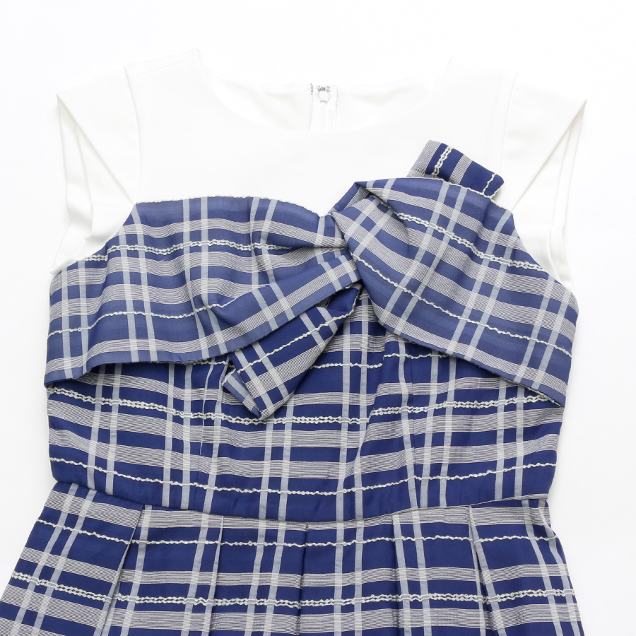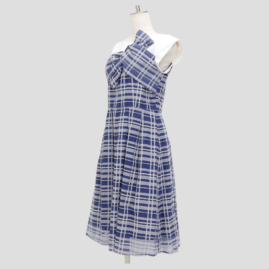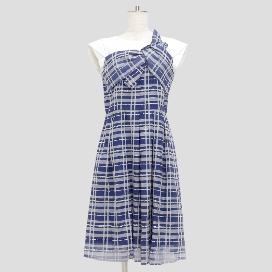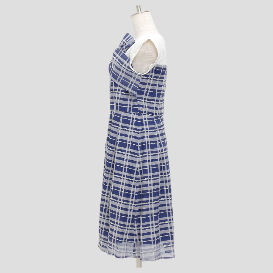 麻スラブチェックワンピース(Mサイズ / ブルー / Dear Princess(ディアプリンセス))
