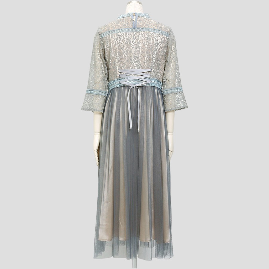 襟元はハイネックとなっていて、袖は手元が美しく見える7分袖。
