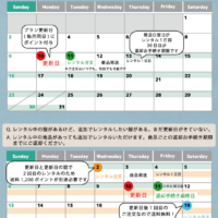 例えば、初めてプラン登録した日が1月10日であれば、2月10日、3月10日・・・というように毎月10日が「プラン更新日」となり、カード決済されます。「今月はレンタルの予定がない」、「ポイントが溜まってしまった」という場合には「休止」をしてください。「休止」はマイページから選択できます。