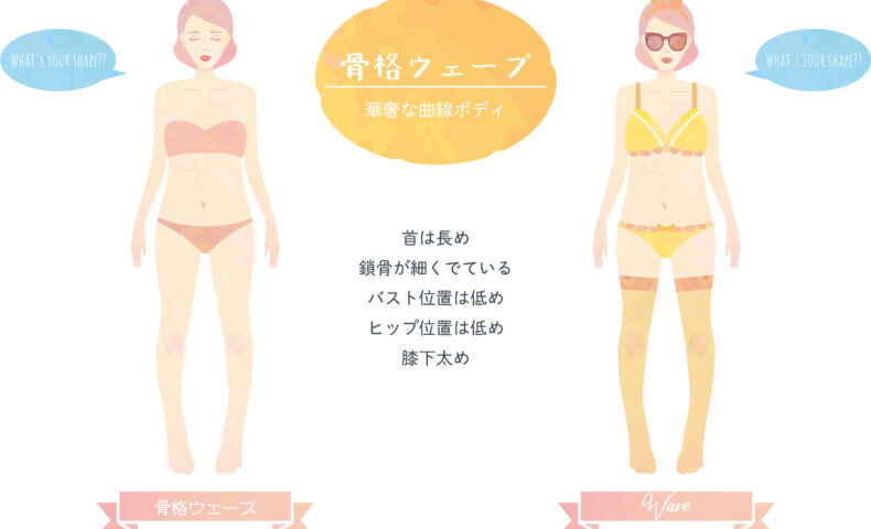 肩のラインが丸く、なだらかなウエストラインは、骨格ウェーブの魅力的な特徴です。