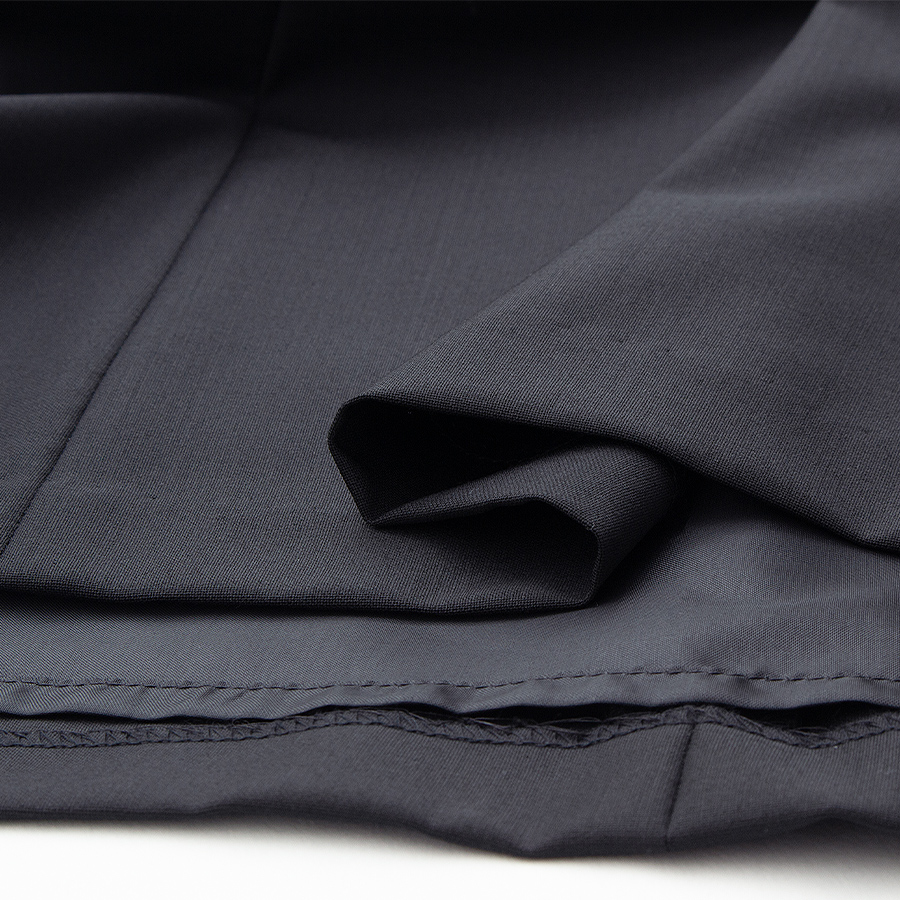 しなやかな素材とストレートシルエットで落ち感が美しく、きちんと見え。