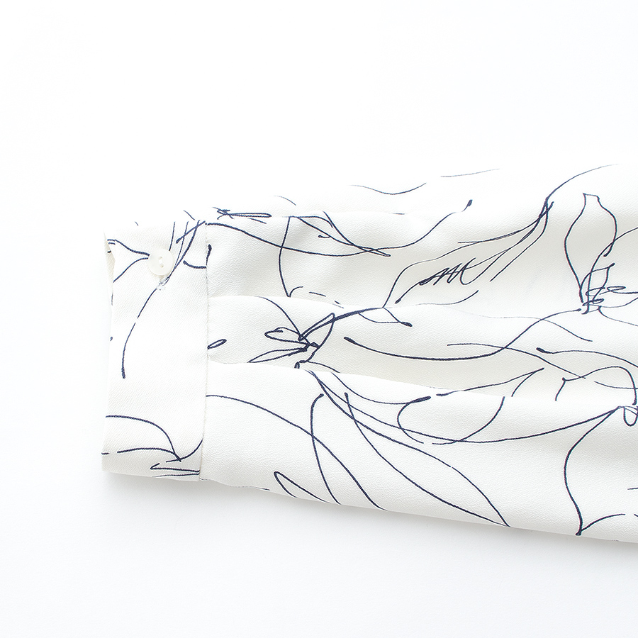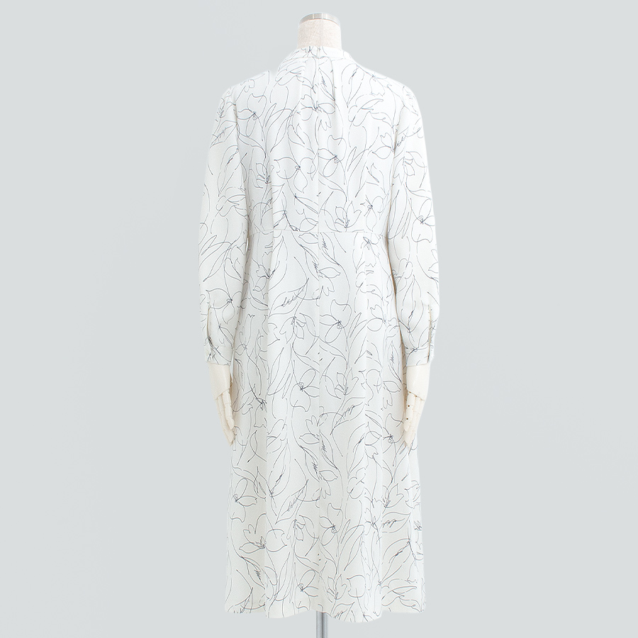 美しいラインフラワープリントが甘すぎず、洗練された印象を与え、特別な日だけでなく日常にも活躍します。