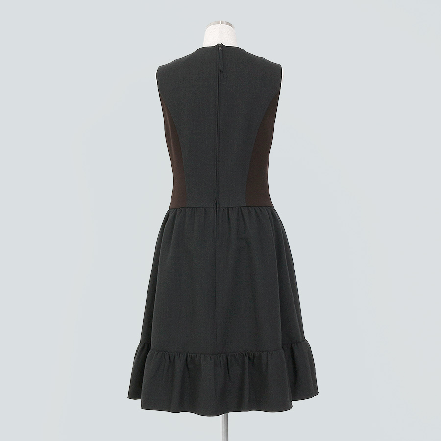 ★スタッフコメント★シックなチャコールカラーと深いVネックが印象的なワンピース。スカートのフリルが可愛らしさをプラス。大人のデートやカジュアルなお出かけに最適です。