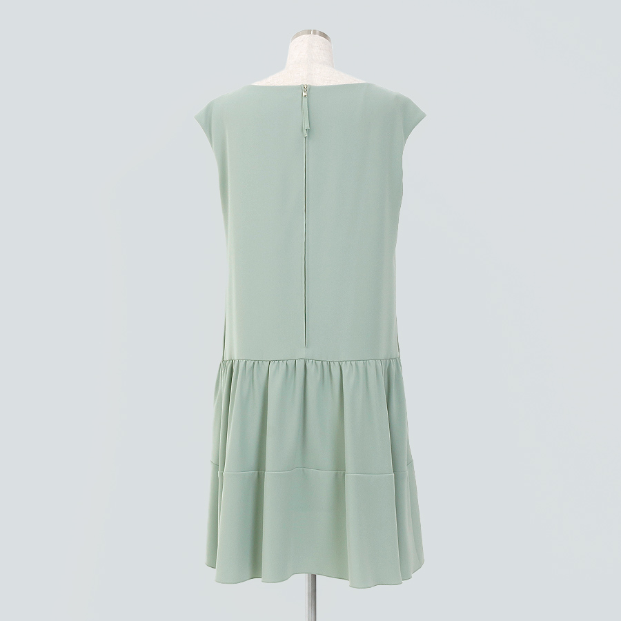 落ち着きのあるグリーンカラーが魅力のティアードワンピース。
