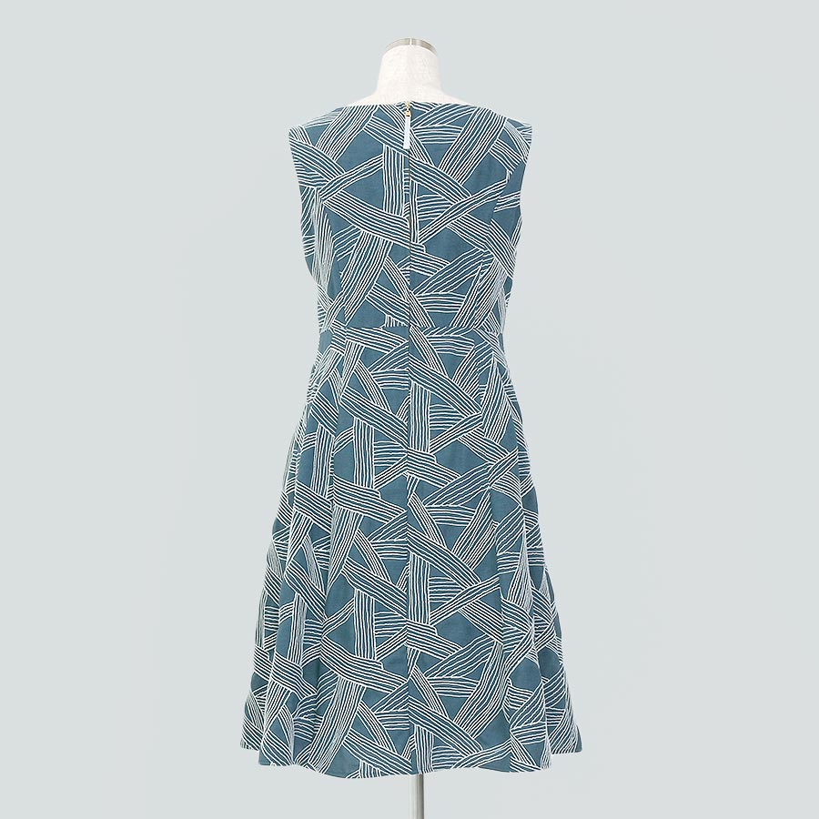 すっきりとしたノースリーブと、フィット&フレアのシルエットで女性らしさを引き立ててくれる一着。