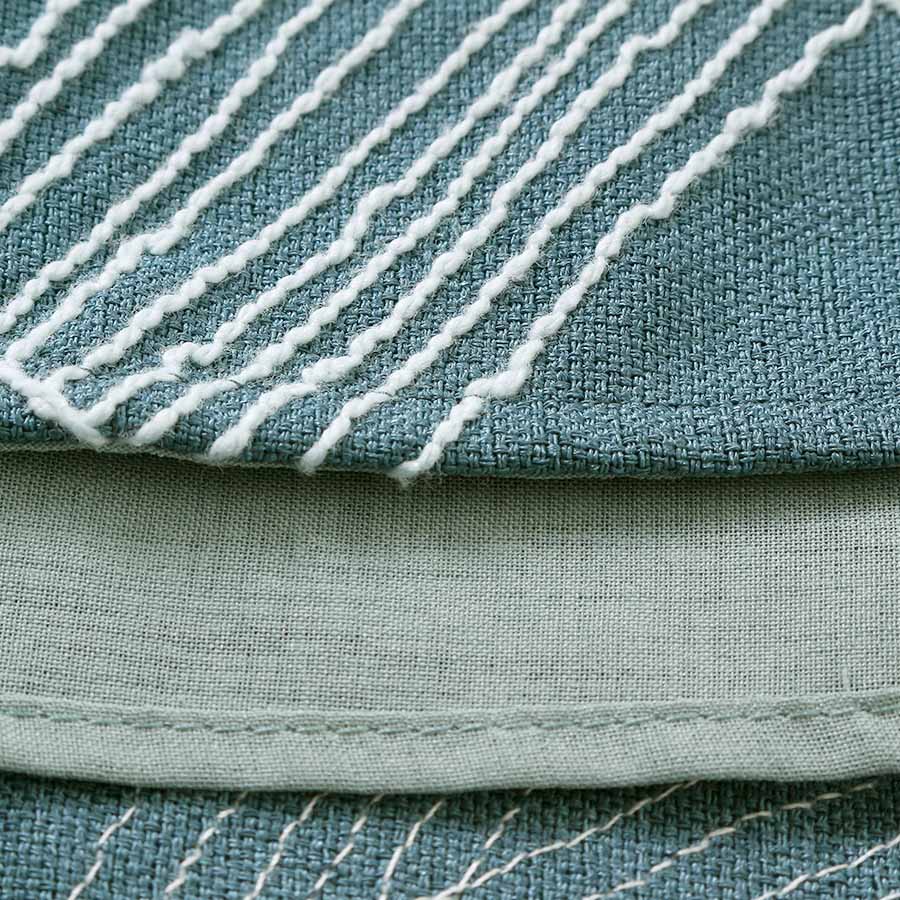 洗練された白いラインの刺繍が印象的なフレアワンピース。