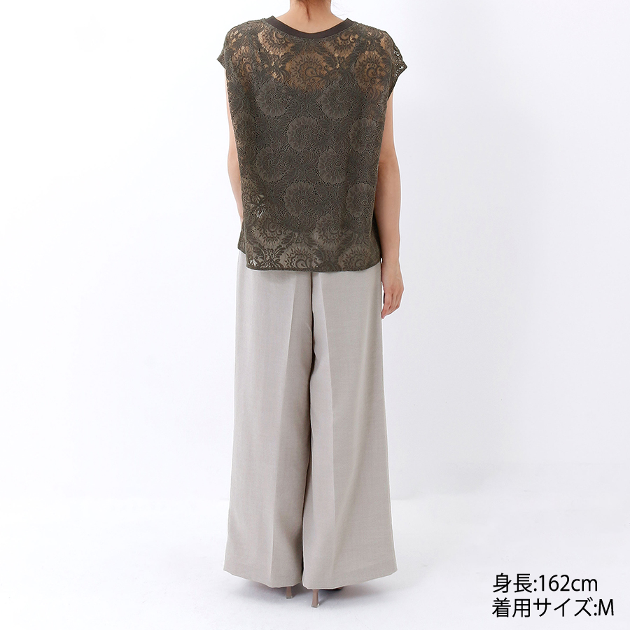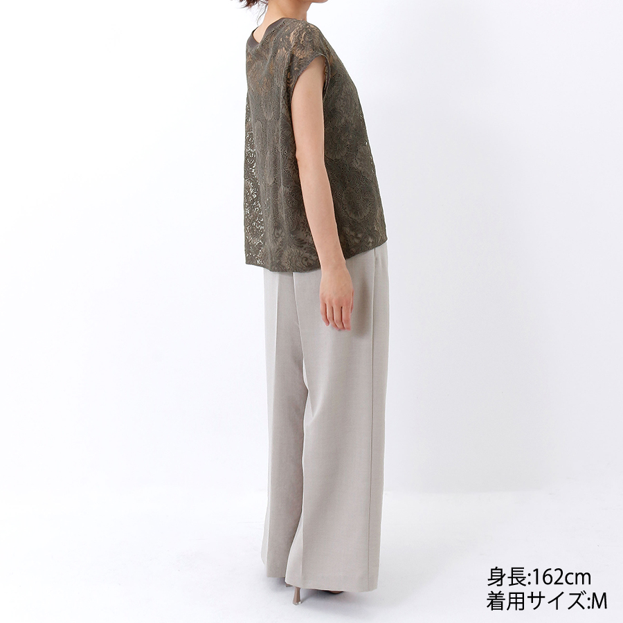 ワイドシルエットで下半身を包み込み、体型をカバーしてくれます。