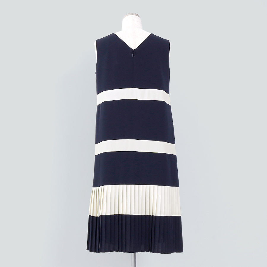 バイカラー裾プリーツワンピース(Mサイズ / ネイビーxベージュ / Double(ドゥーブレ))