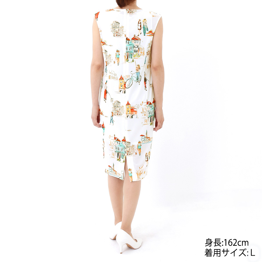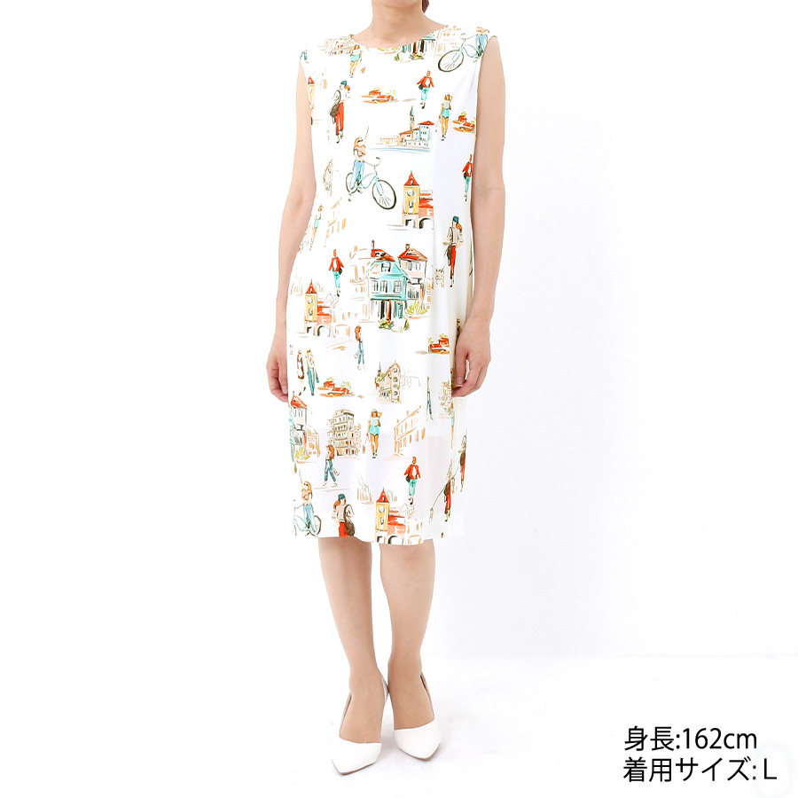 プリントジャージー・ラインワンピース(Lサイズ / オフホワイト / R.Deux(アールドゥ)) [付属品 1点:アンダードレス]