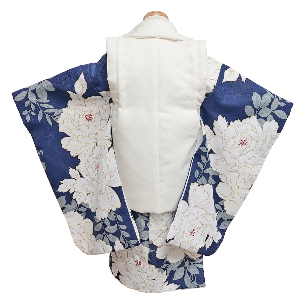 被布セット 女の子 3才 牡丹 くすみ ネイビー(Fサイズ / ネイビー / 京都瑠璃雛菊(キョウトルリヒナギク)) [11点セット]