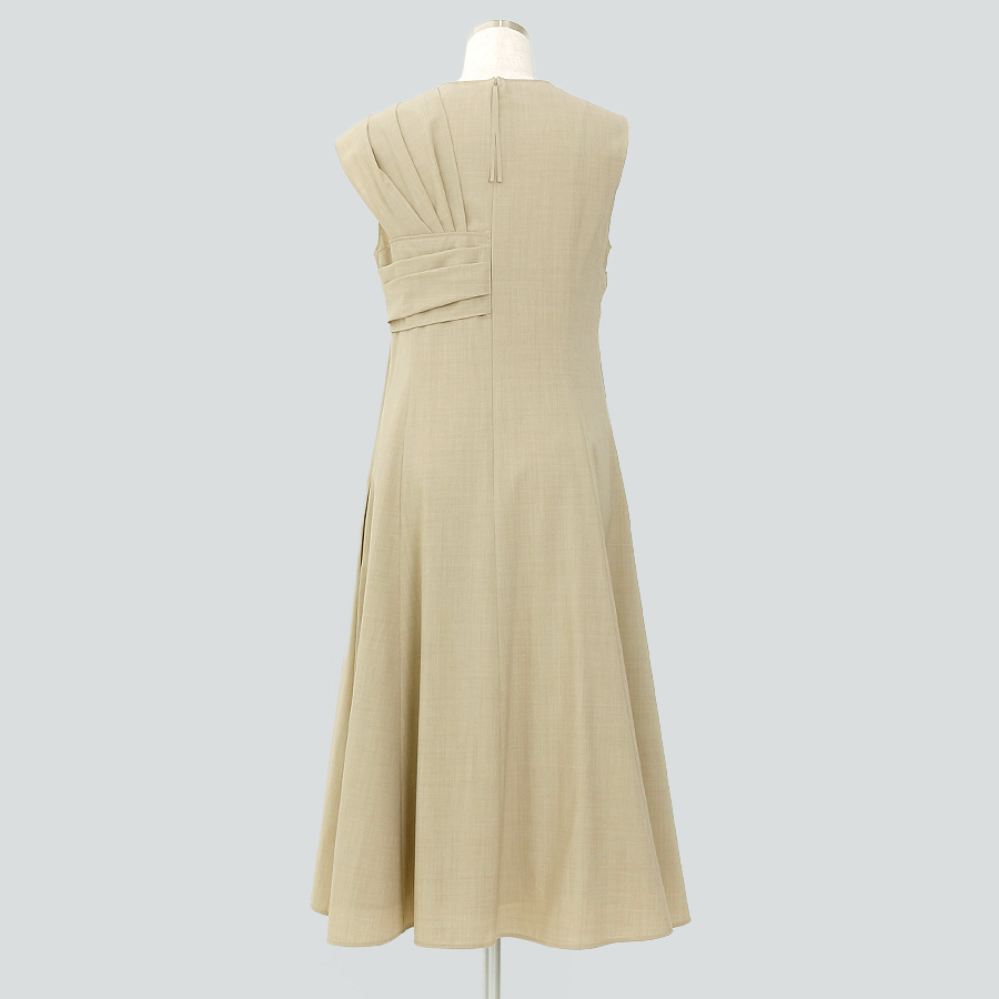 ★スタッフコメント★アシンメトリーのデザインがお洒落なワンピース。ウエスト位置が高めで脚長効果も◎ウール混ですが、軽い着心地でロングシーズンご利用いただけます。