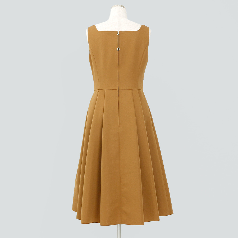 ★スタッフコメント★暖かみのあるキャメルカラーのノースリーブワンピース。ウエストの切り替えとフレアスカートが、自然な美シルエットを作ります。上質な生地感がエレガントな印象を引き立て、デイリーユースから特別なシーンまで幅広く活用できます。シンプルなデザインなので、アクセサリーやヒールと合わせて華やかに演出するのもおすすめです。