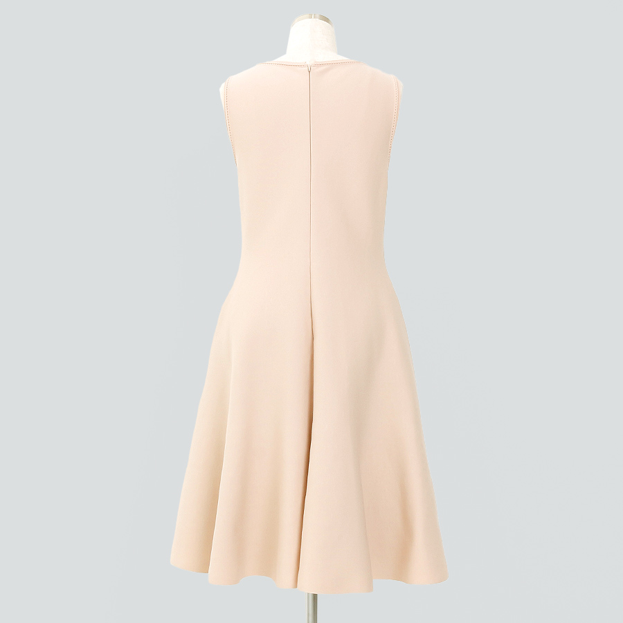 ★スタッフコメント★上品なベージュのノースリーブワンピース。滑らかな生地感が女性らしさを引き立て、Aラインシルエットで自然な美しさを演出します。デイリースタイルからオフィス、ディナーまで、様々なシーンで活躍する一着です。