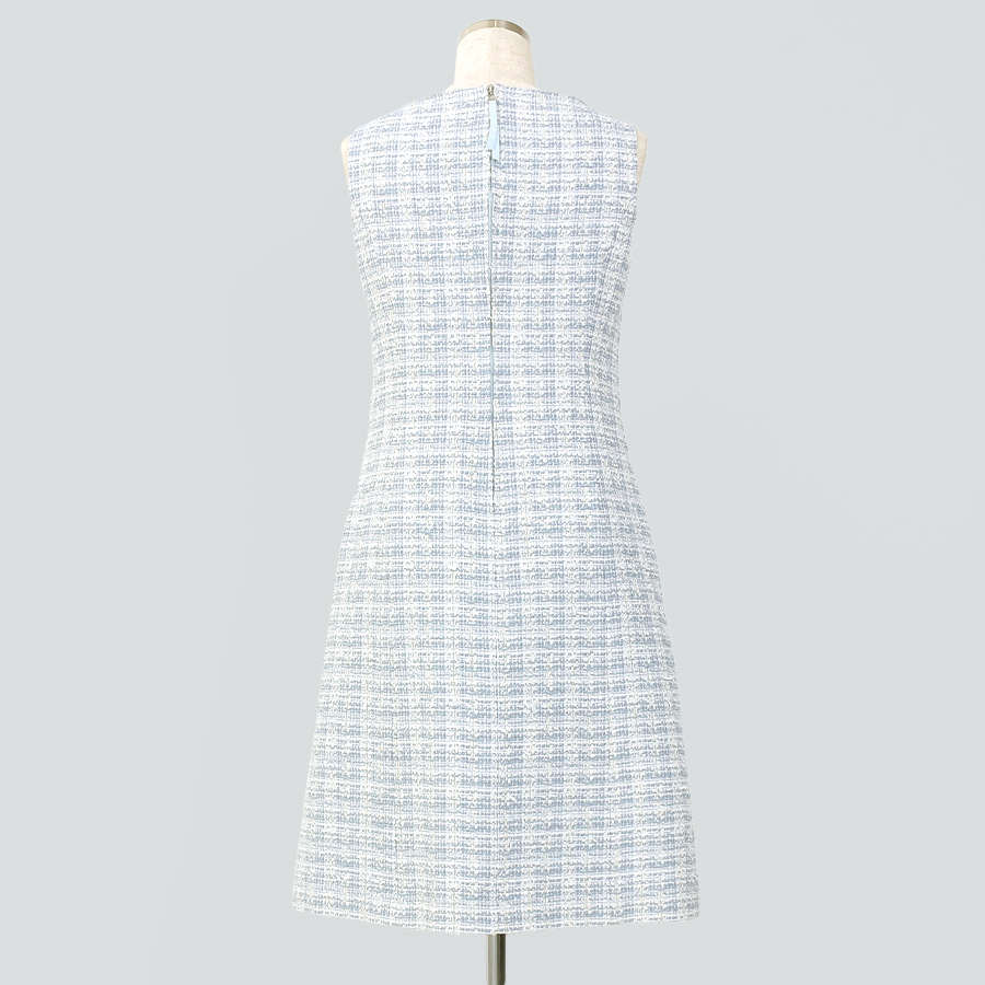 ★スタッフコメント★爽やかなツイードのワンピース。軽やかな生地で涼しげな仕上がり。シンプルながらも洗練されたデザインが特徴です。オフィスカジュアルや休日のショッピングにおすすめ。カーディガンやショールを合わせると、一層おしゃれな印象に。ディテールにこだわったスタイルで、誰でも簡単にコーディネートが楽しめます。