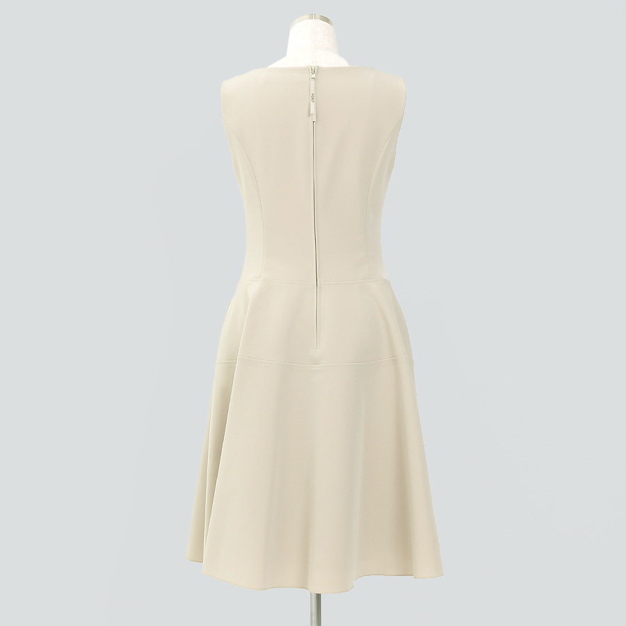 ★スタッフコメント★シンプルで洗練されたデザインのノースリーブワンピース。 Aラインシルエットが女性らしいシルエットを演出します。 柔らかなベージュカラーが品のある印象を与え、様々なシーンで活躍。 お出かけやデートはもちろん、ジャケットをあわせてビジネスにもおすすめです。