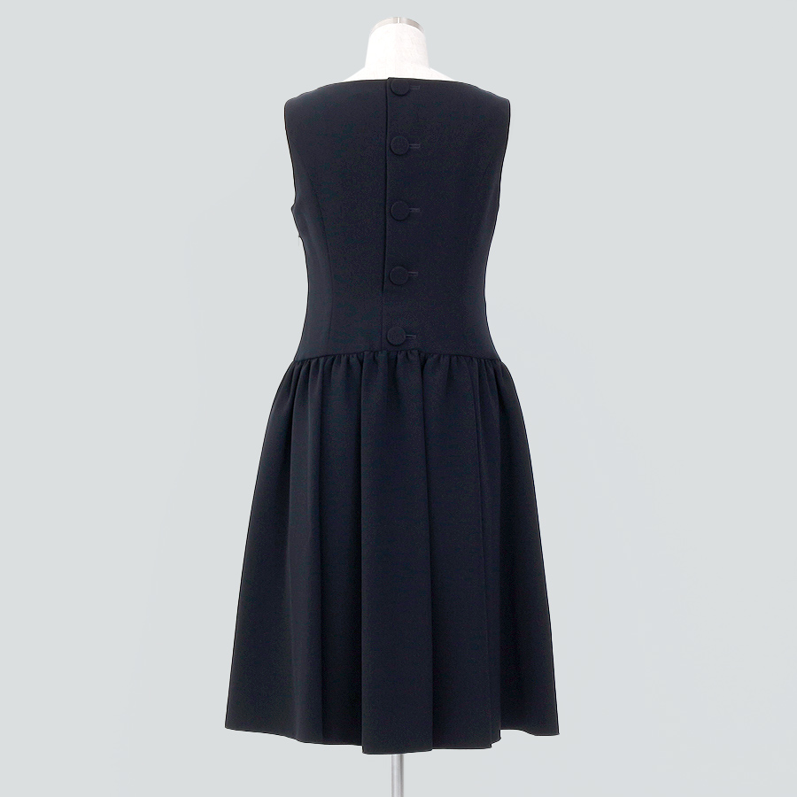 ★スタッフコメント★上品なブラックのノースリーブワンピース。ミディアム丈が足元を華奢に引き立てます。バックの大きなボタンがフェミニンな印象をプラス。パーティ―シーンにお勧めの1着です。 ※スカート前部分に小さなスレがあります。