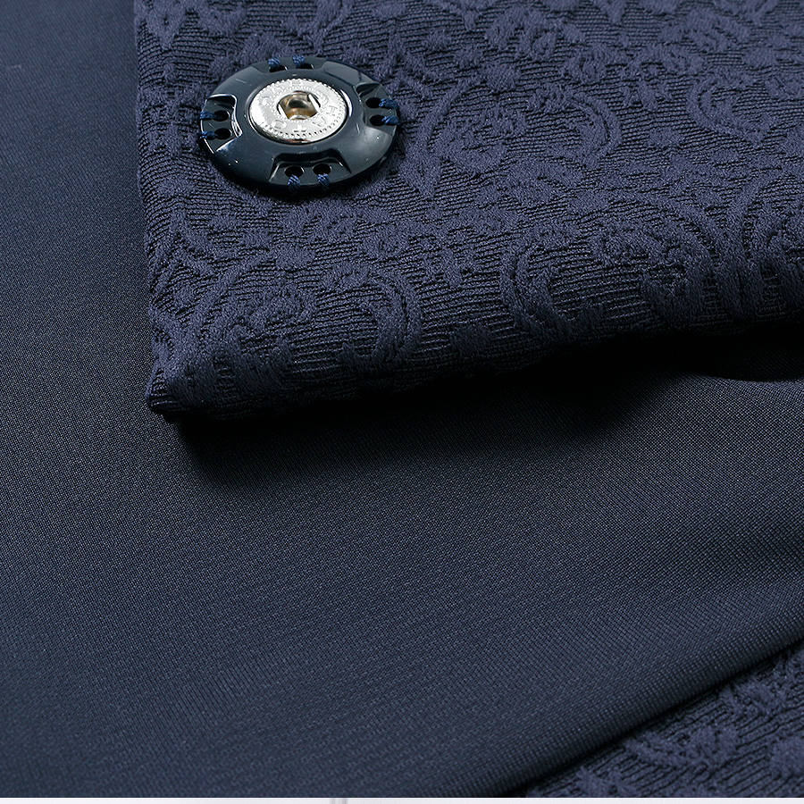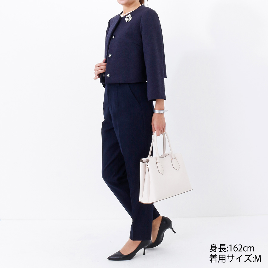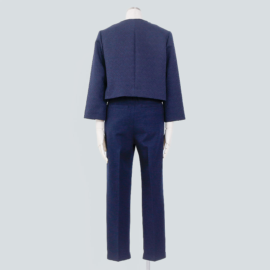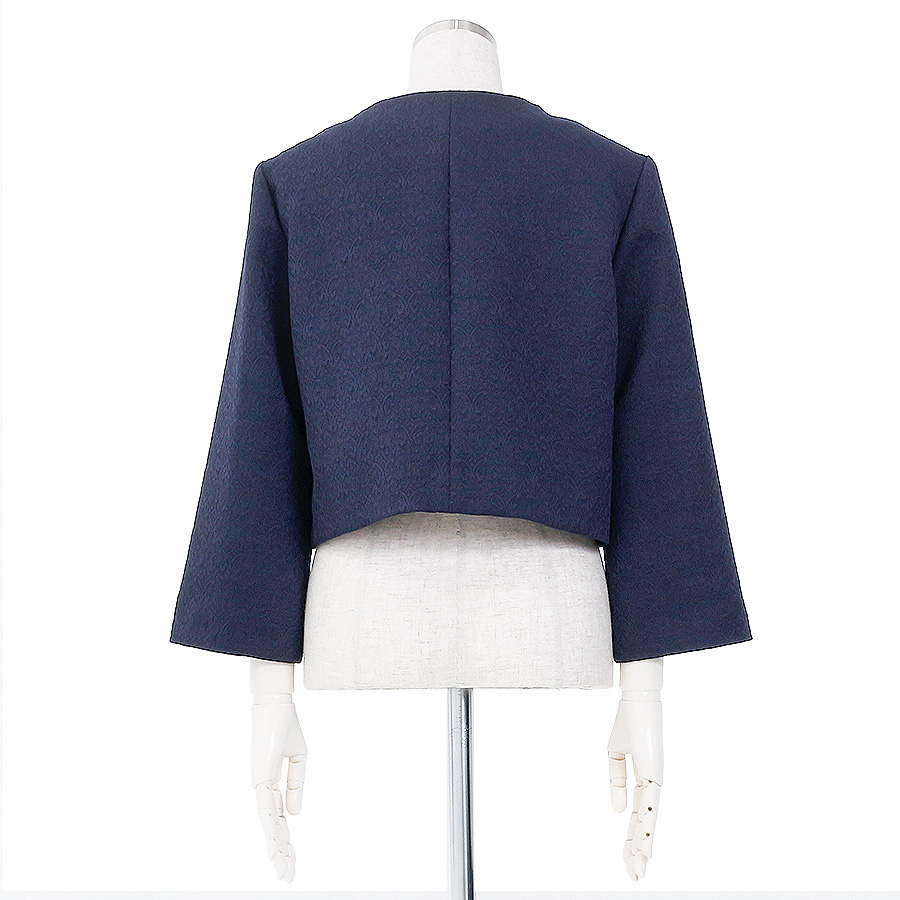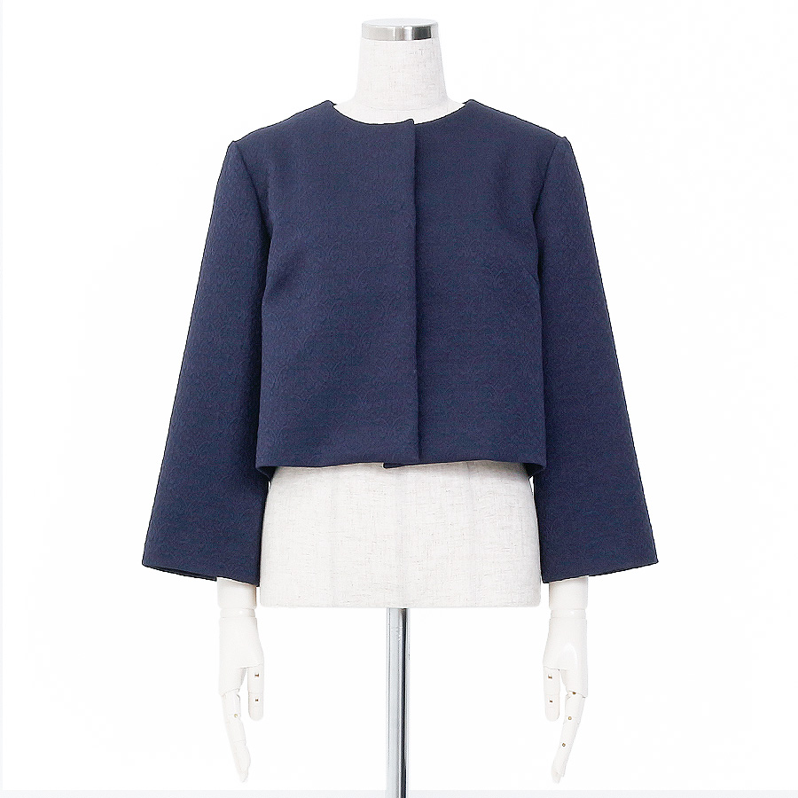 【ジャケット】程よいハリと上品な立体感のあるジャガード生地のノーカラージャケット。