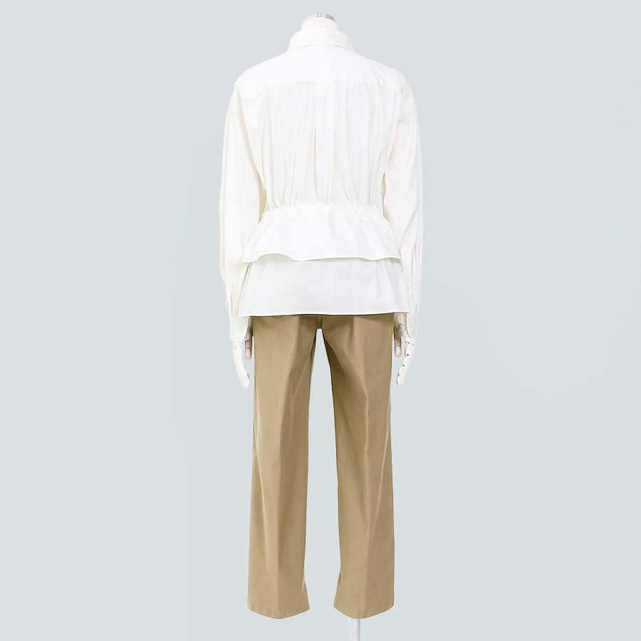 フリルブラウス&ベイカーパンツ(Mサイズ / ホワイト×ベージュ / lelill(レリル))
