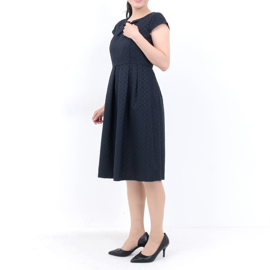 凹凸のあるダイヤ柄のジャガード生地が特徴のワンピース。