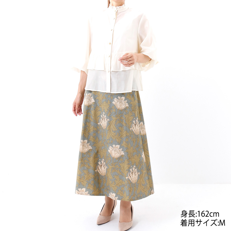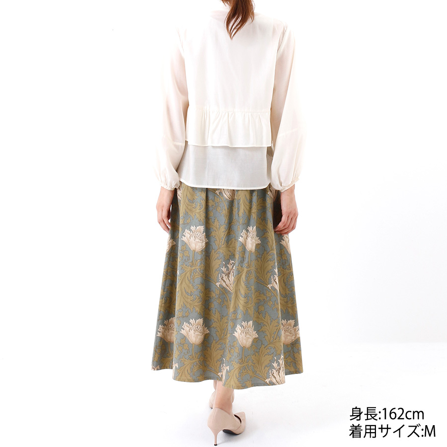 シアフリルブラウス×ボタニカル柄スカート(Mサイズ / オフホワイト×グリーン )