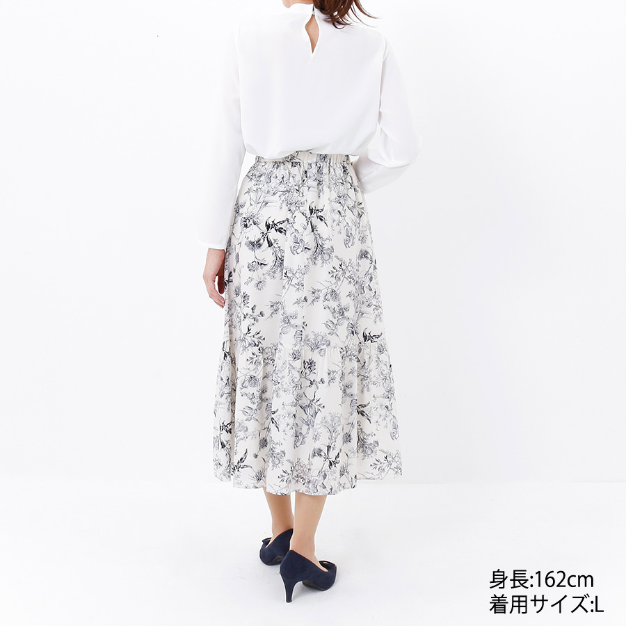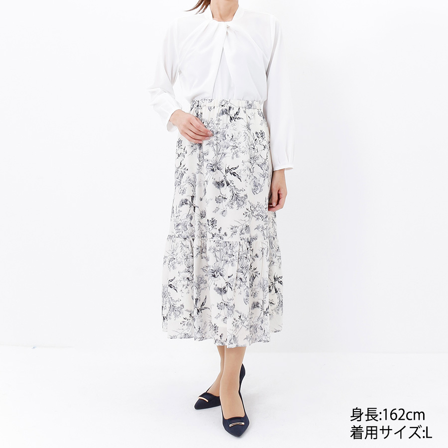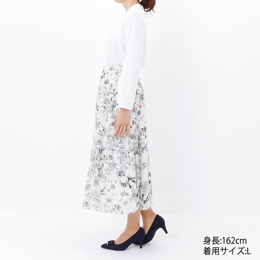 ブラウス×ボタニカル柄スカート(Lサイズ / ホワイト)