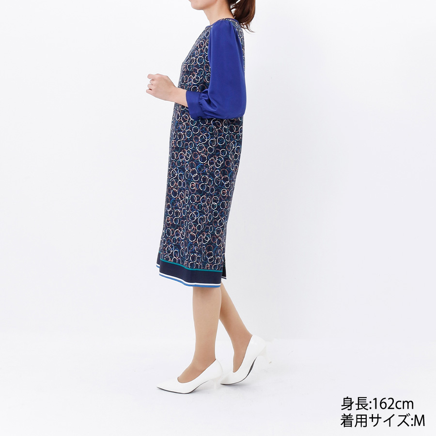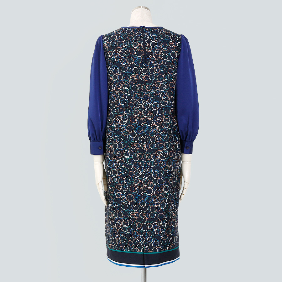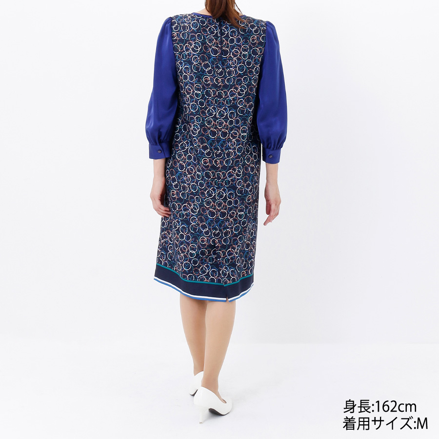サークル柄サテンワンピース(Mサイズ / ブルー / REGENCE(レジァンス))