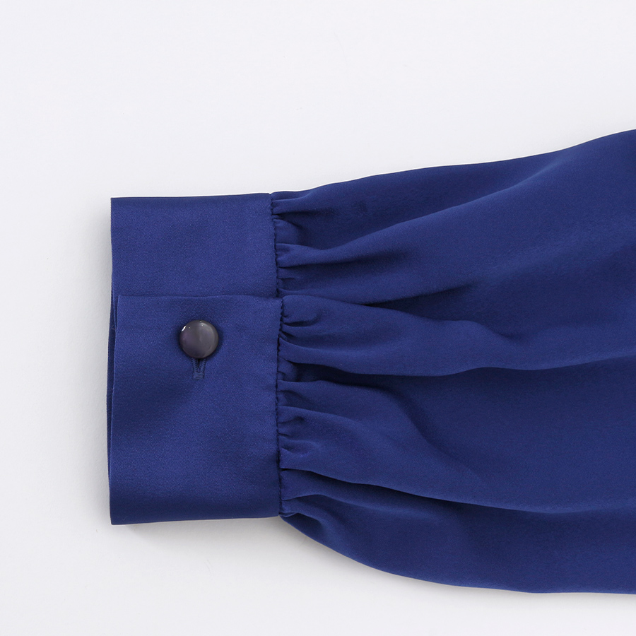 柄を活かしたシンプルなディティールに七分丈のパフスリーブがポイントです。