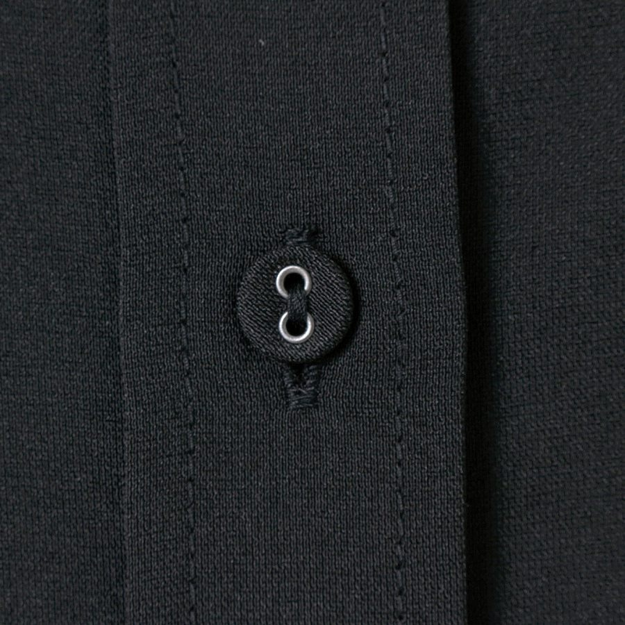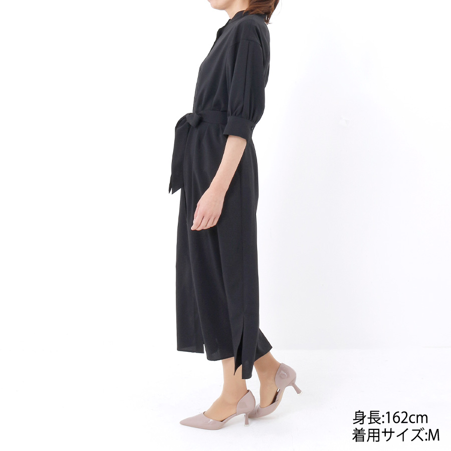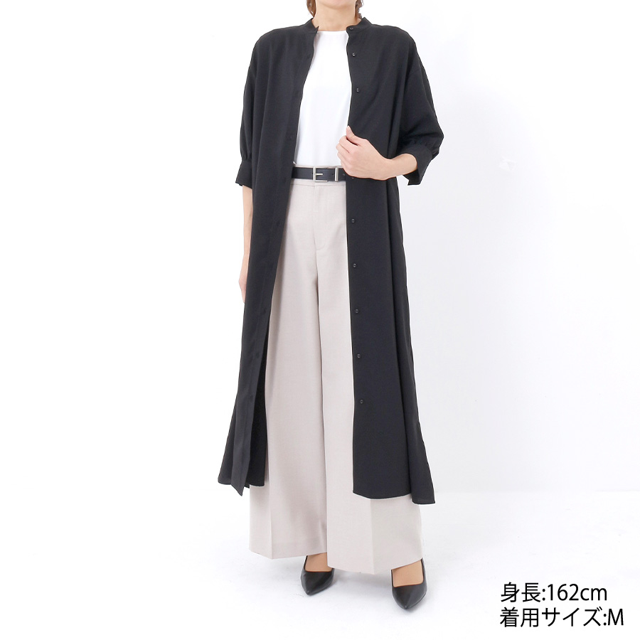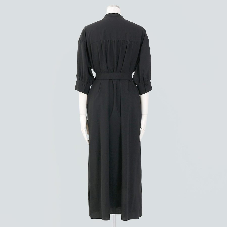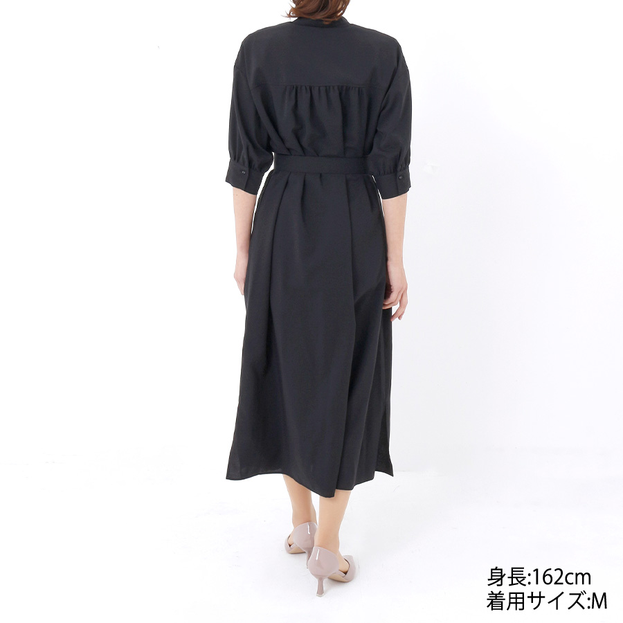 お袖は5分袖となっており、カフス部分のギャザーのボリューム感がエレガントな1枚で着映えするシャツワンピース。