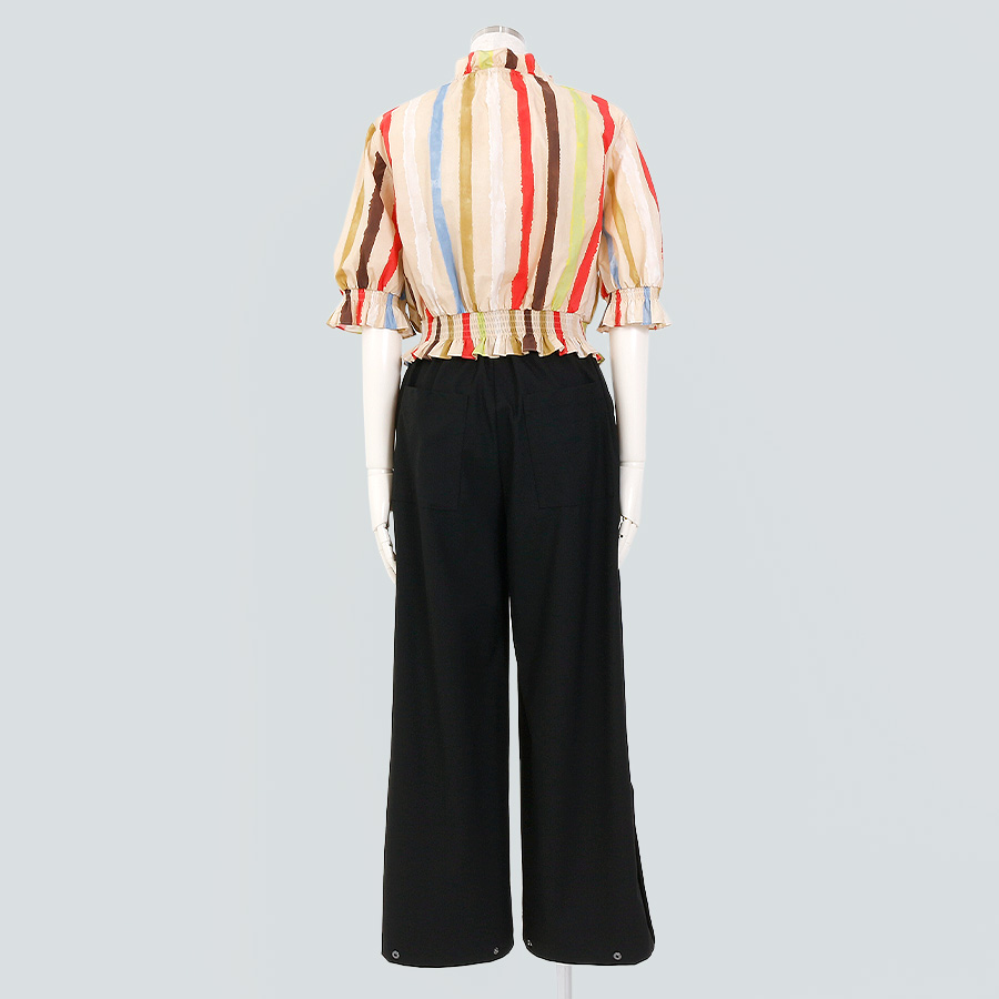 マルチカラーブラウス&セミワイドパンツ(Mサイズ / マルチ×ブラック )