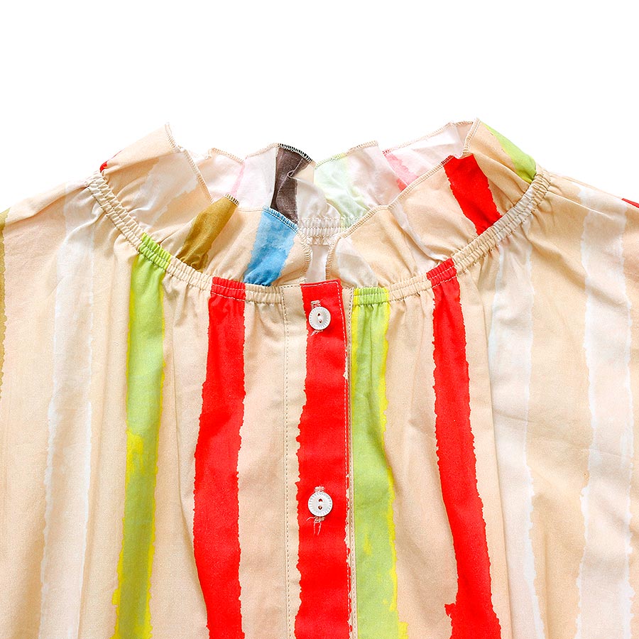 大胆なマルチカラーストライプのショート丈ブラウス。