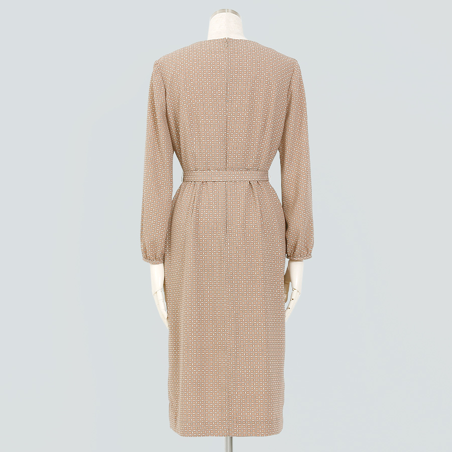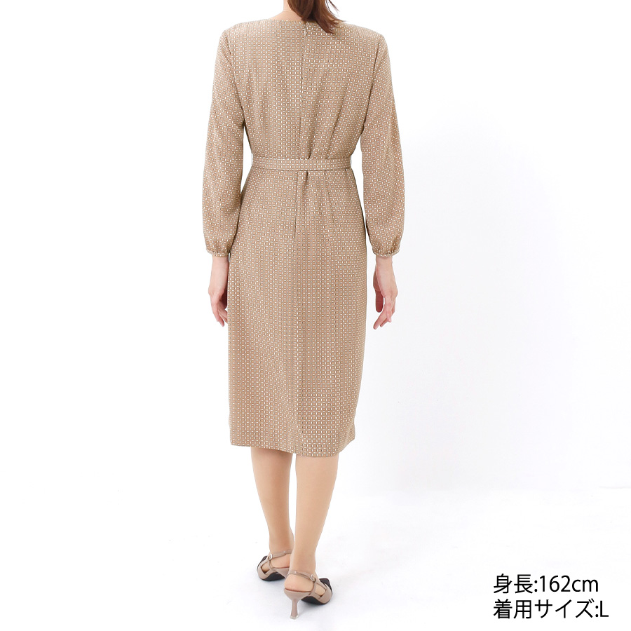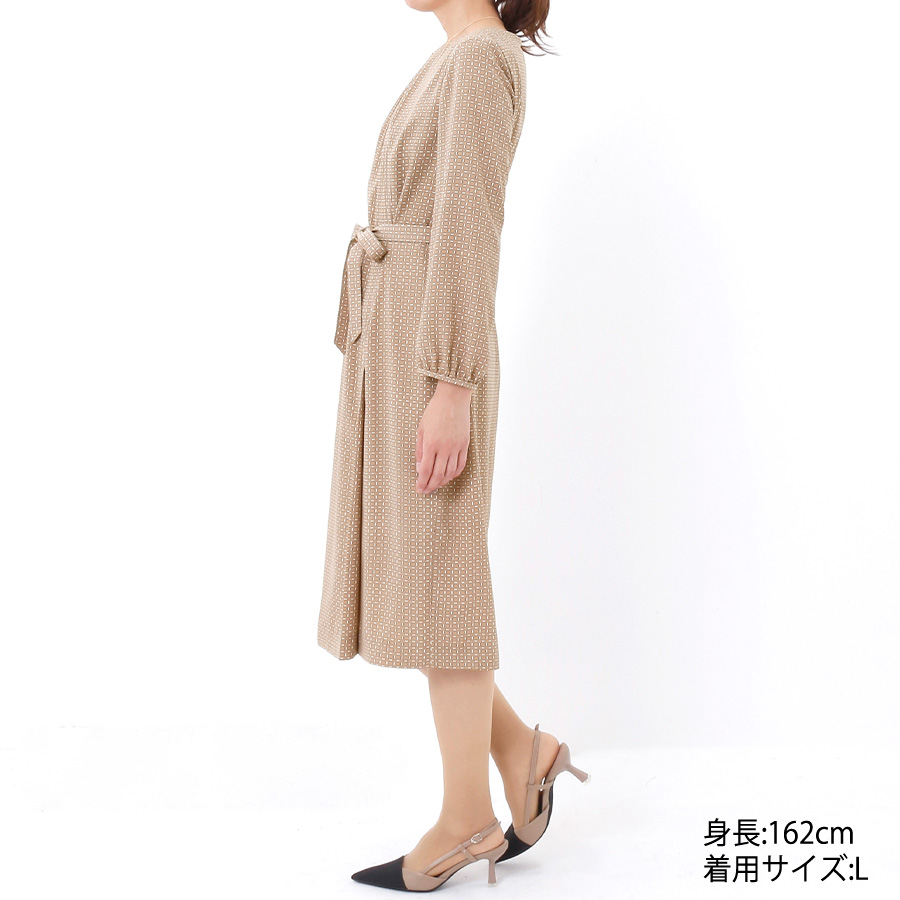 ジオメトリック柄ワンピース(Lサイズ / ベージュ / COUP DE CHANCE(クードシャンス)) [付属品 点:ベルト]