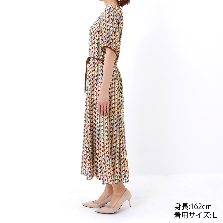 幾何学プリント マーメイドラインワンピース(Lサイズ / グレージュ / Lui Chantant(ルイシャンタン)) [付属品 1点:リボン]