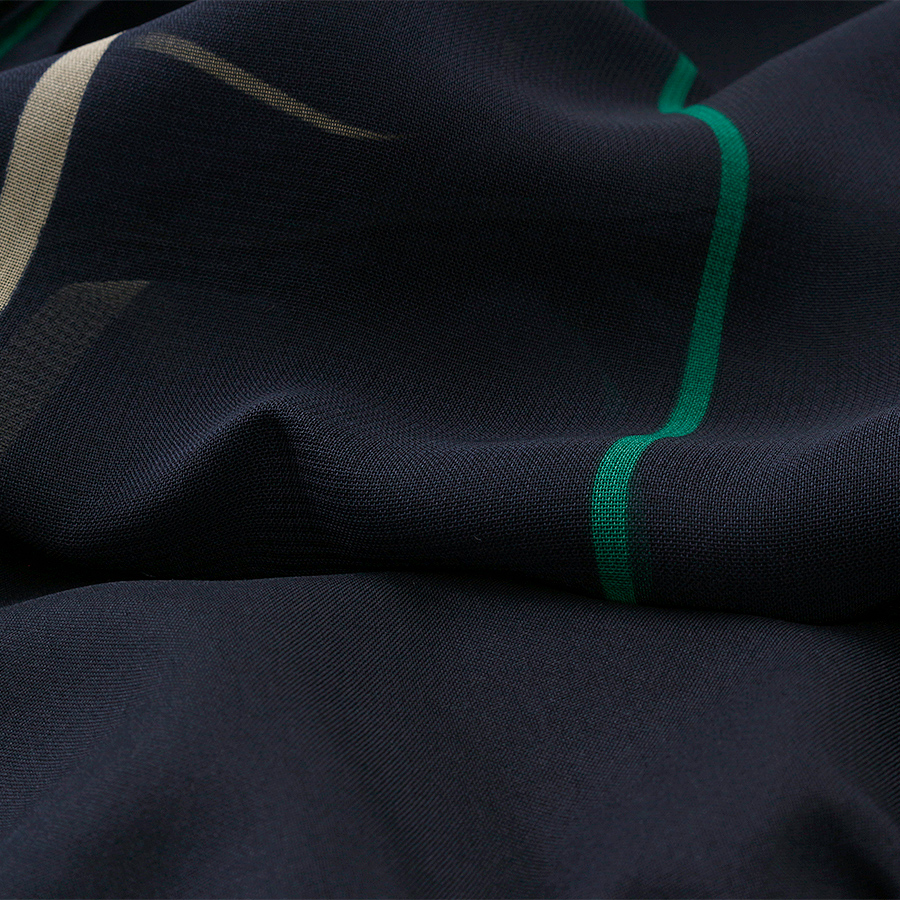 ネイビーに細めのラインが縦のラインを強調し、すっきり見せを叶えます。