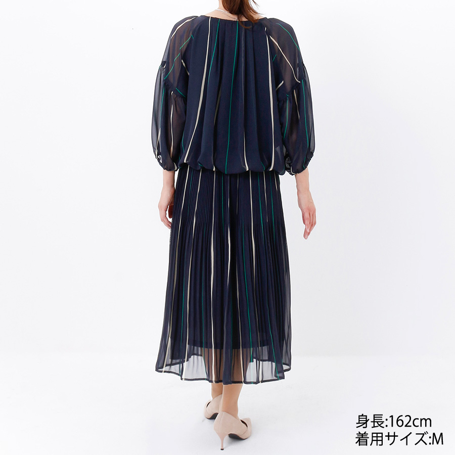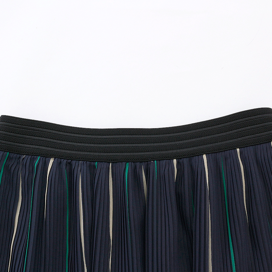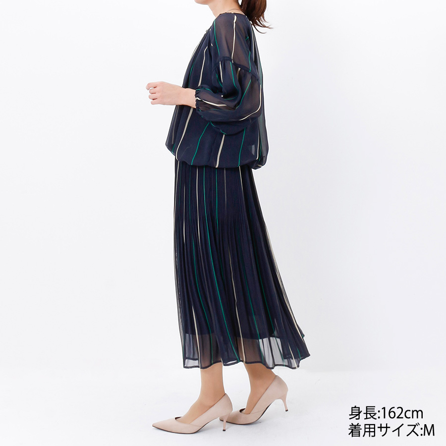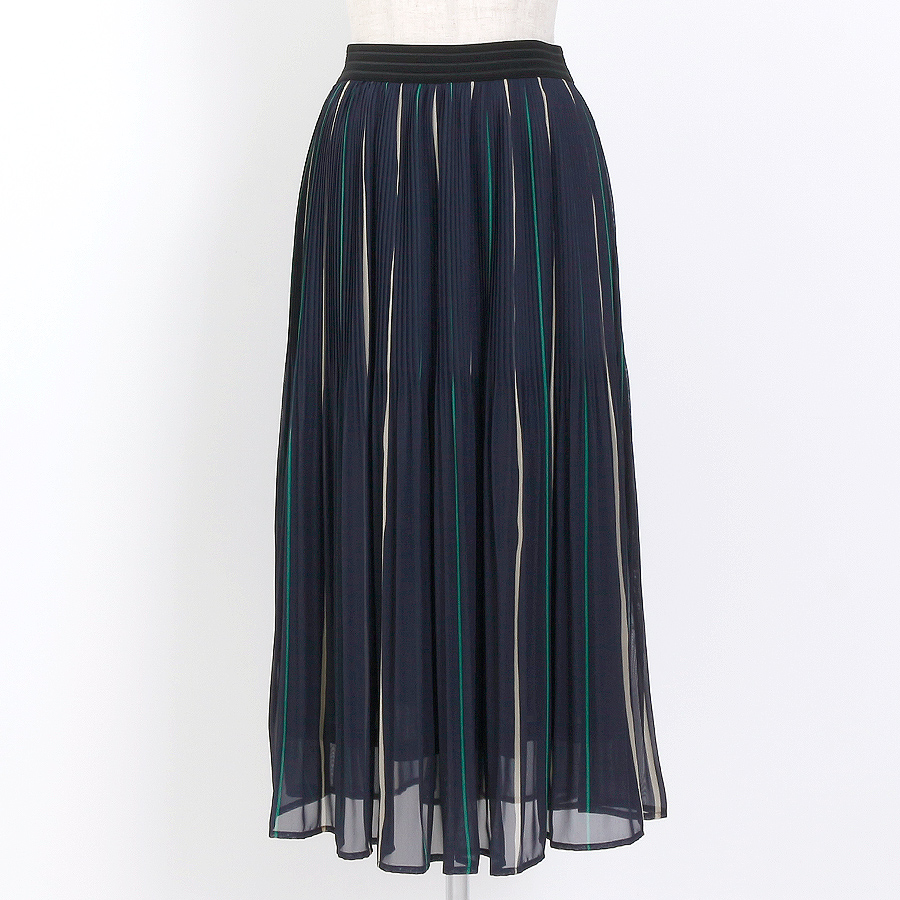 繊細なプリーツと透け感が美しい、上品なストライプスカート。