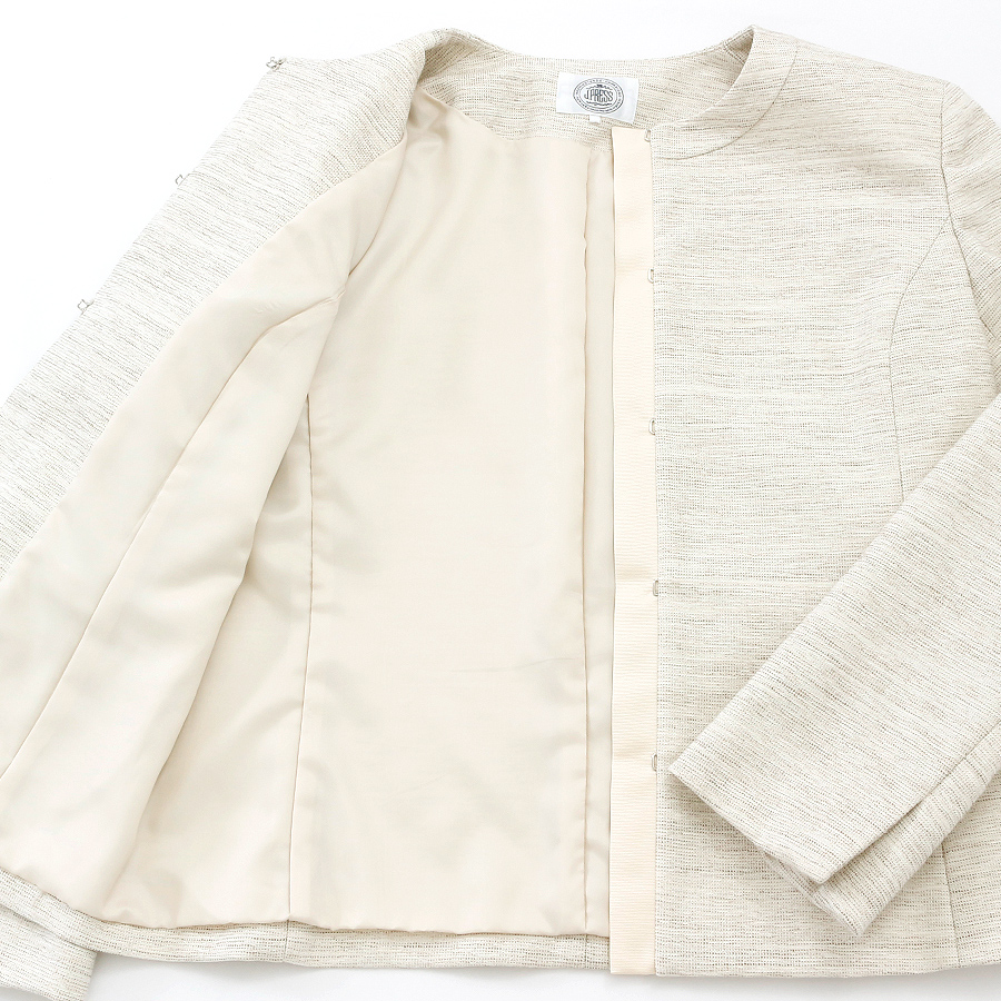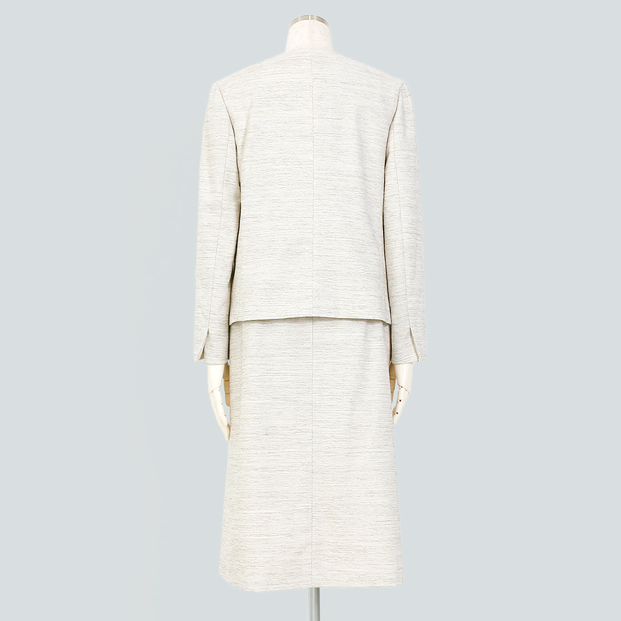 ナチュラルな光沢感でほんのり華やぐ、上品なミックスツイード素材が魅力のスカートスーツ