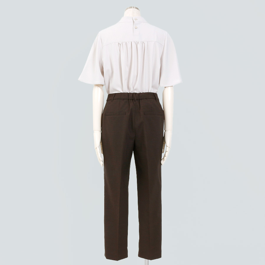 ボウタイブラウス&ストレートパンツ(Mサイズ / ベージュ×ブラウン)