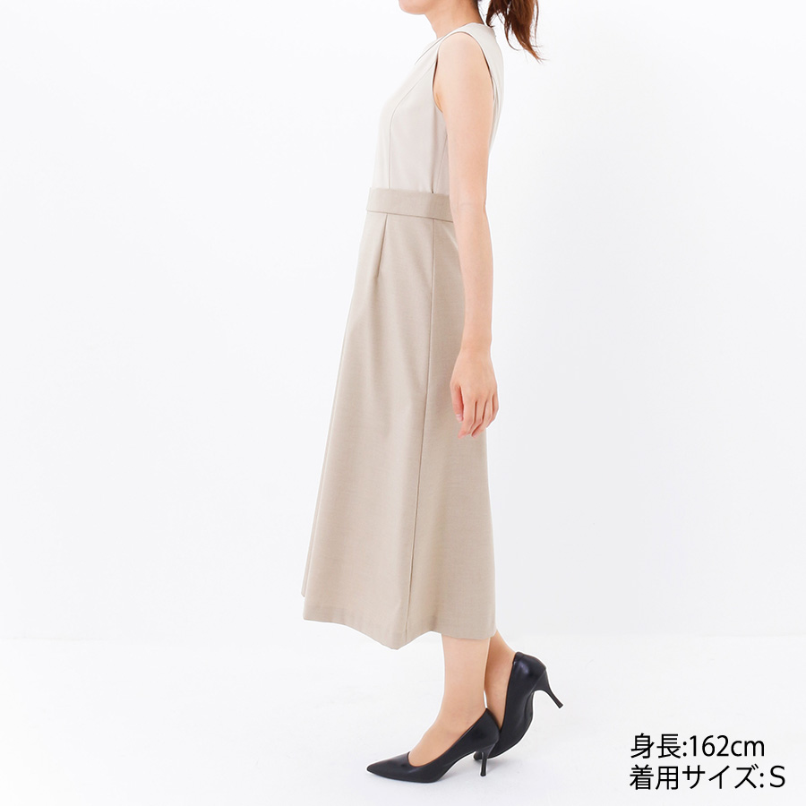 バイカラーデザインで縦長効果抜群のワンピース。