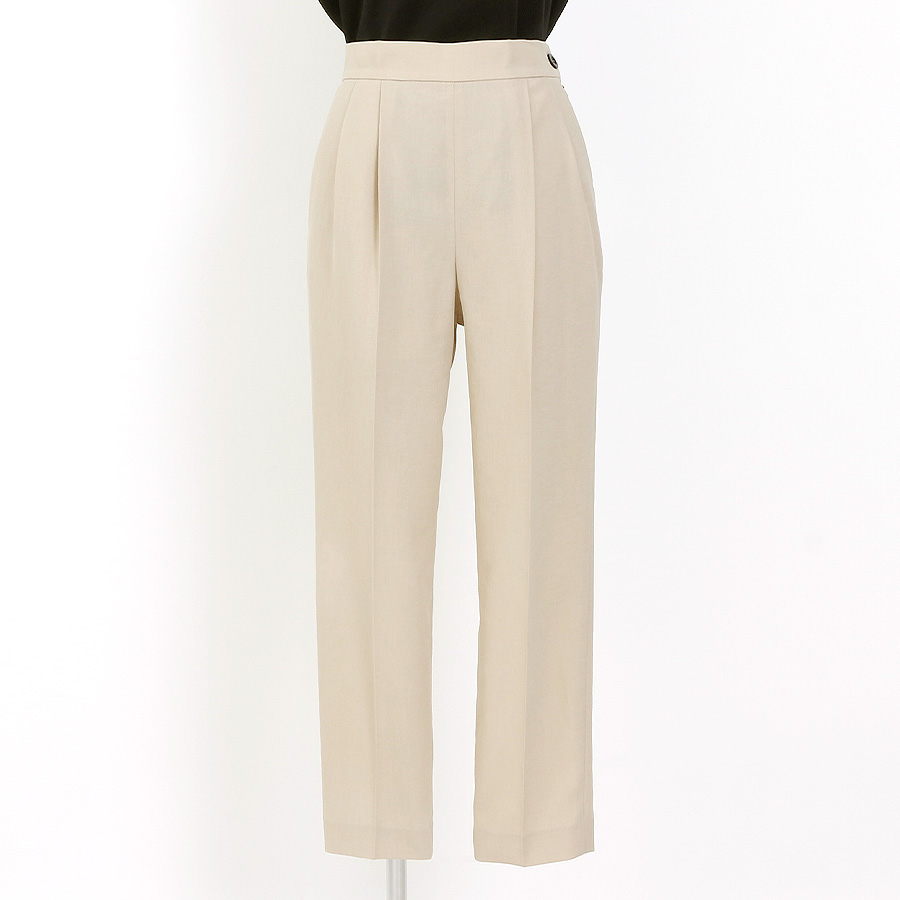 【パンツ】細見え効果のあるタック入りセンタープレスのテーパードパンツ。