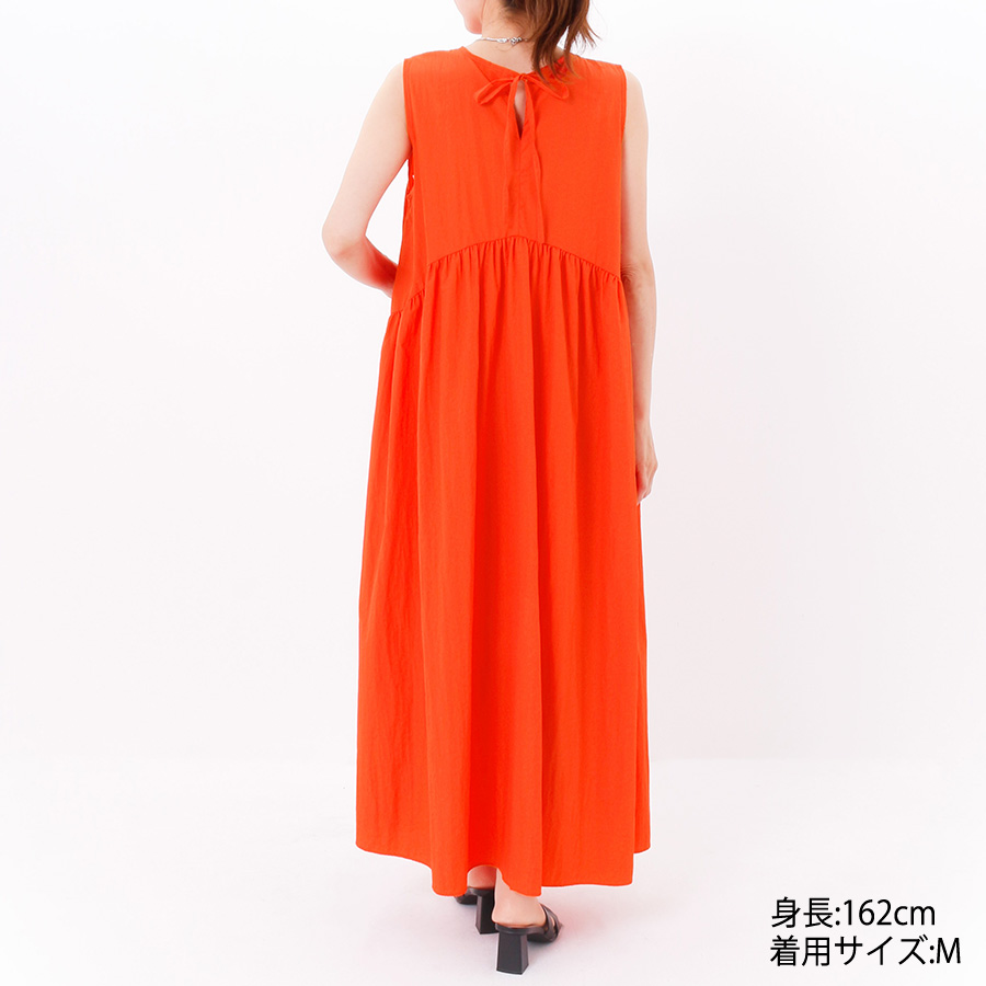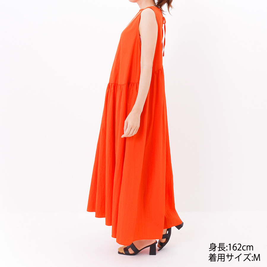 鮮やかなオレンジが夏に映えるロングワンピース。