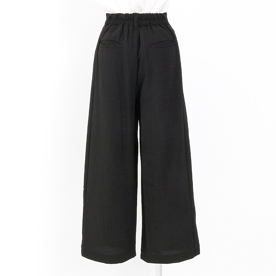 程よいハリ感のある生地で仕立てた、ジレ×ワイドパンツのセットアップ。